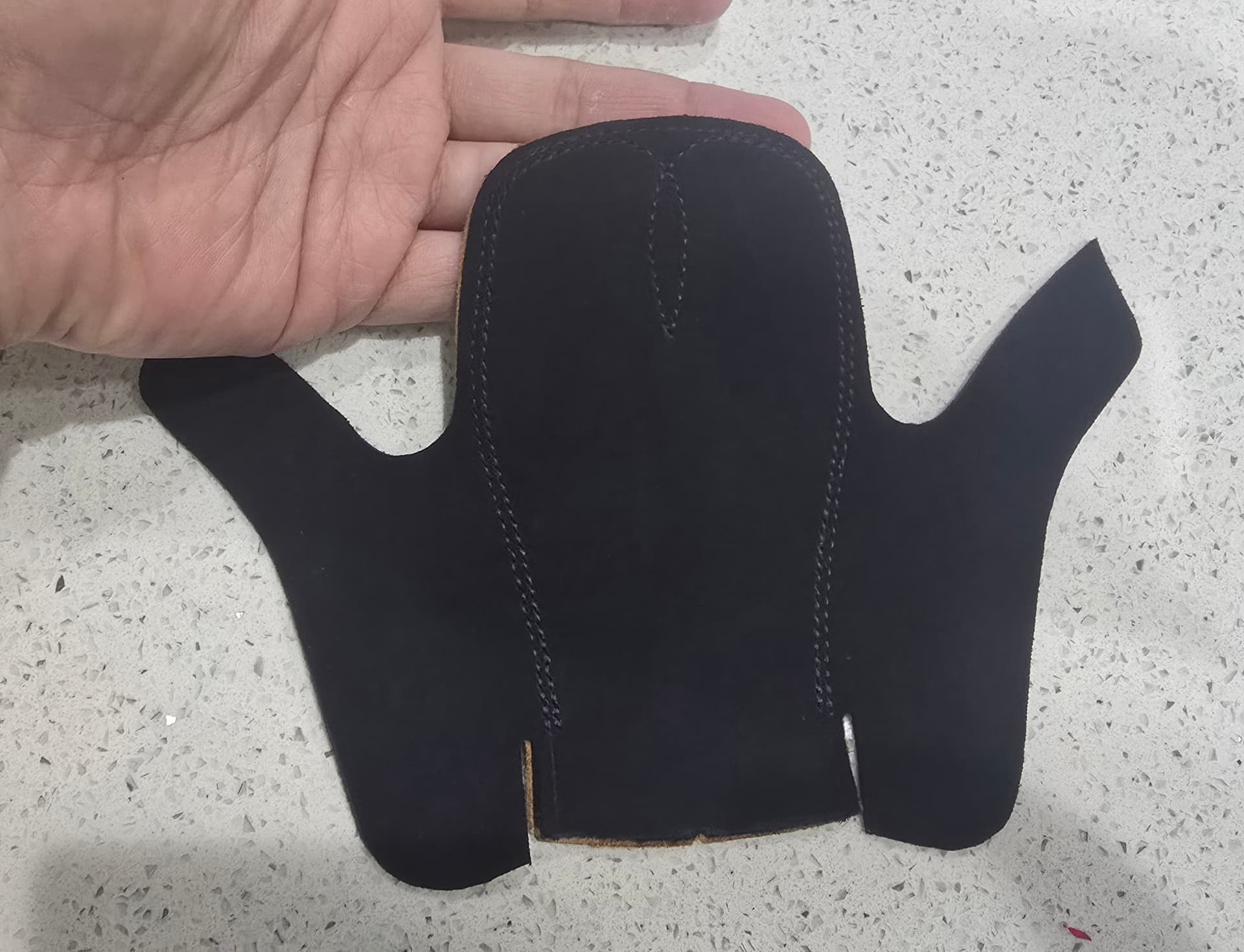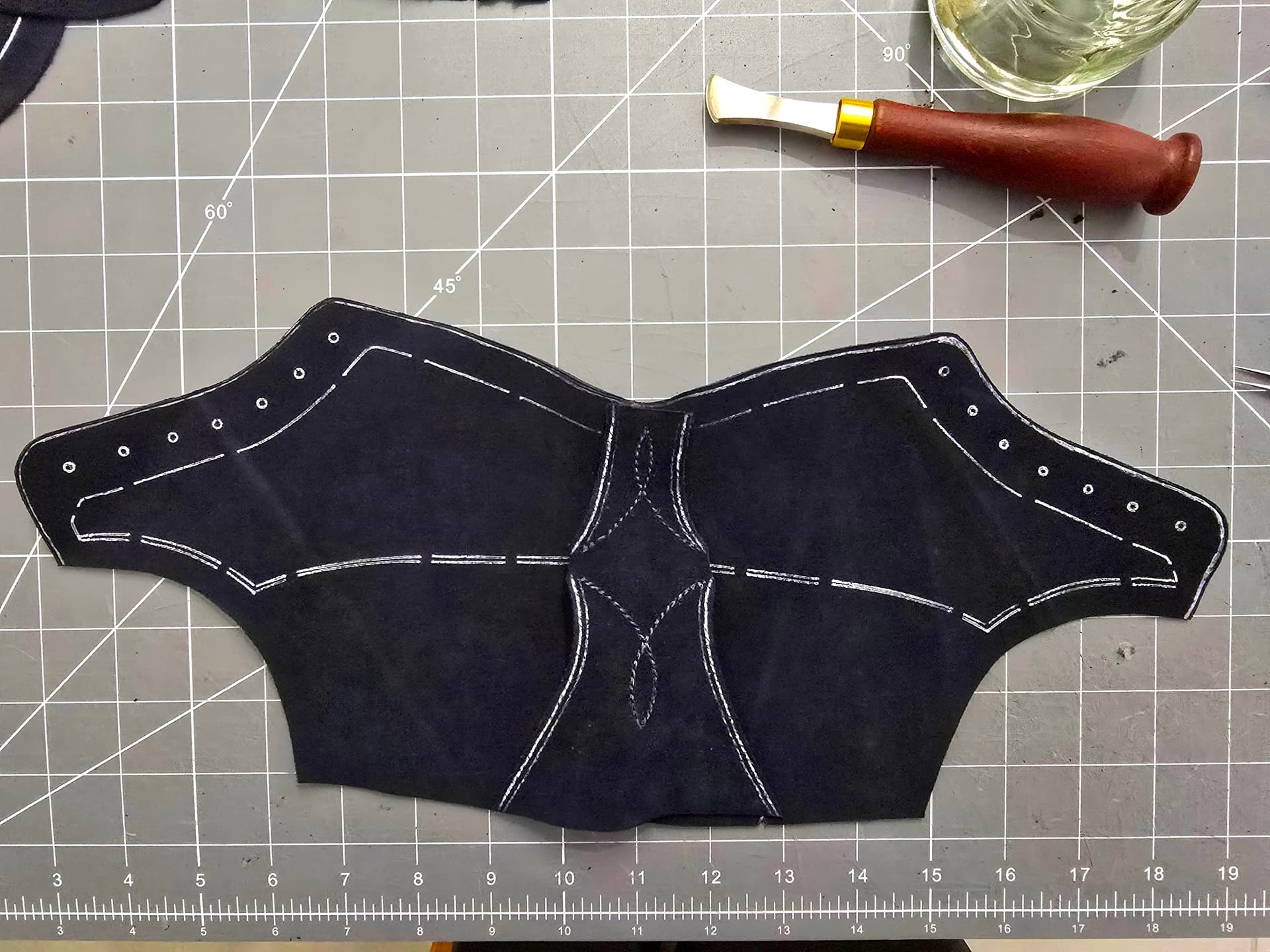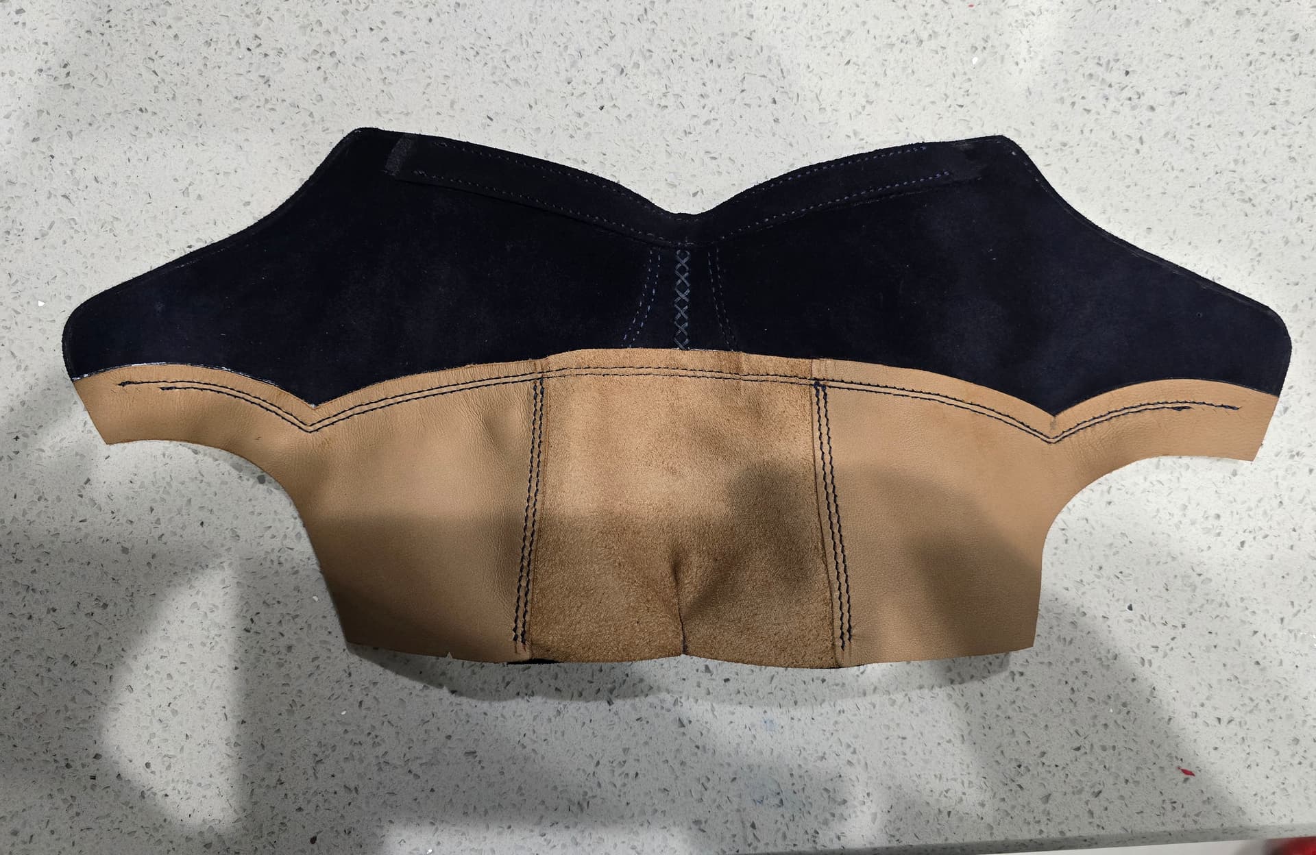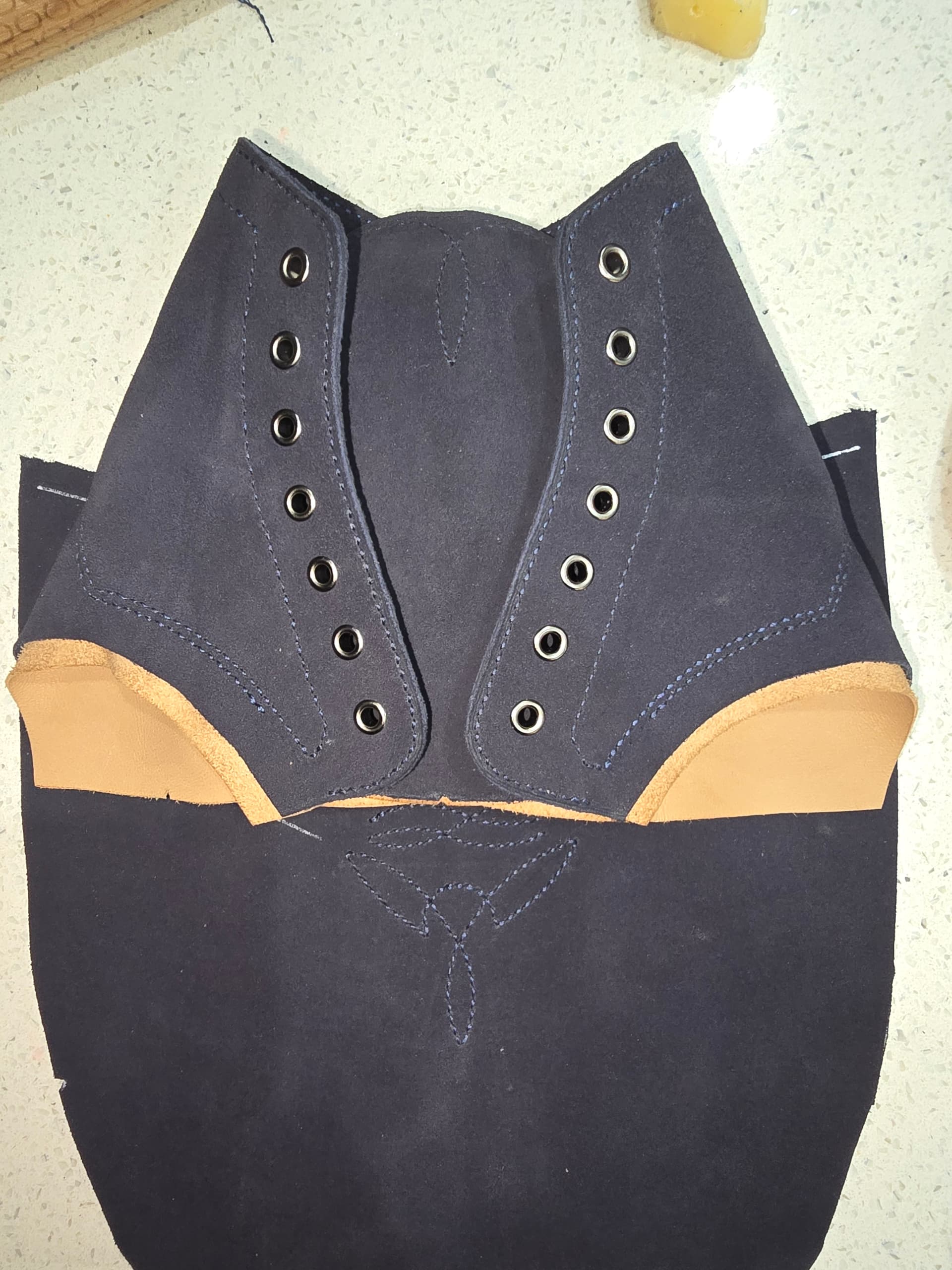 This should let the counter pocket line wrap around the back and let me stitch the backstay on before doing the lining (which is retained by that counter pocket line).
