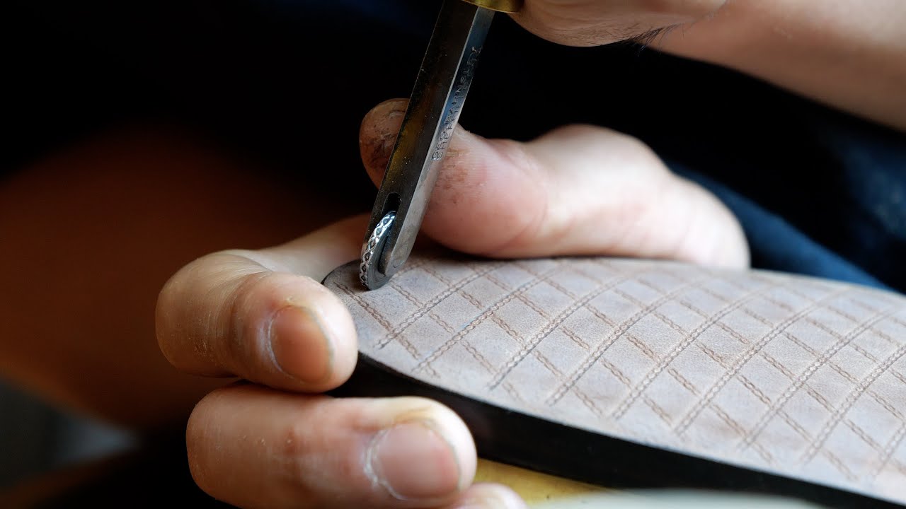 - He cuts with his leather knife bevel side down, not up. He does the same whittling soles and heel lifts.