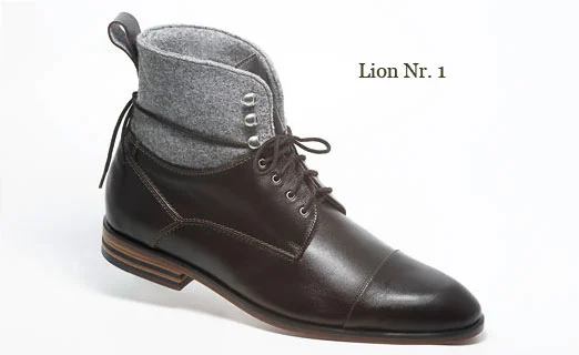 Their “classic business boots” have interesting, angular heel counter covers and the kinds of shafts that pop out from under seams that swoop like shoe toplines:
