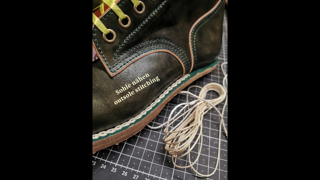 The narrator mentions that the method of sewing the rand to the seat is a trade secret. The video doesn’t show it.