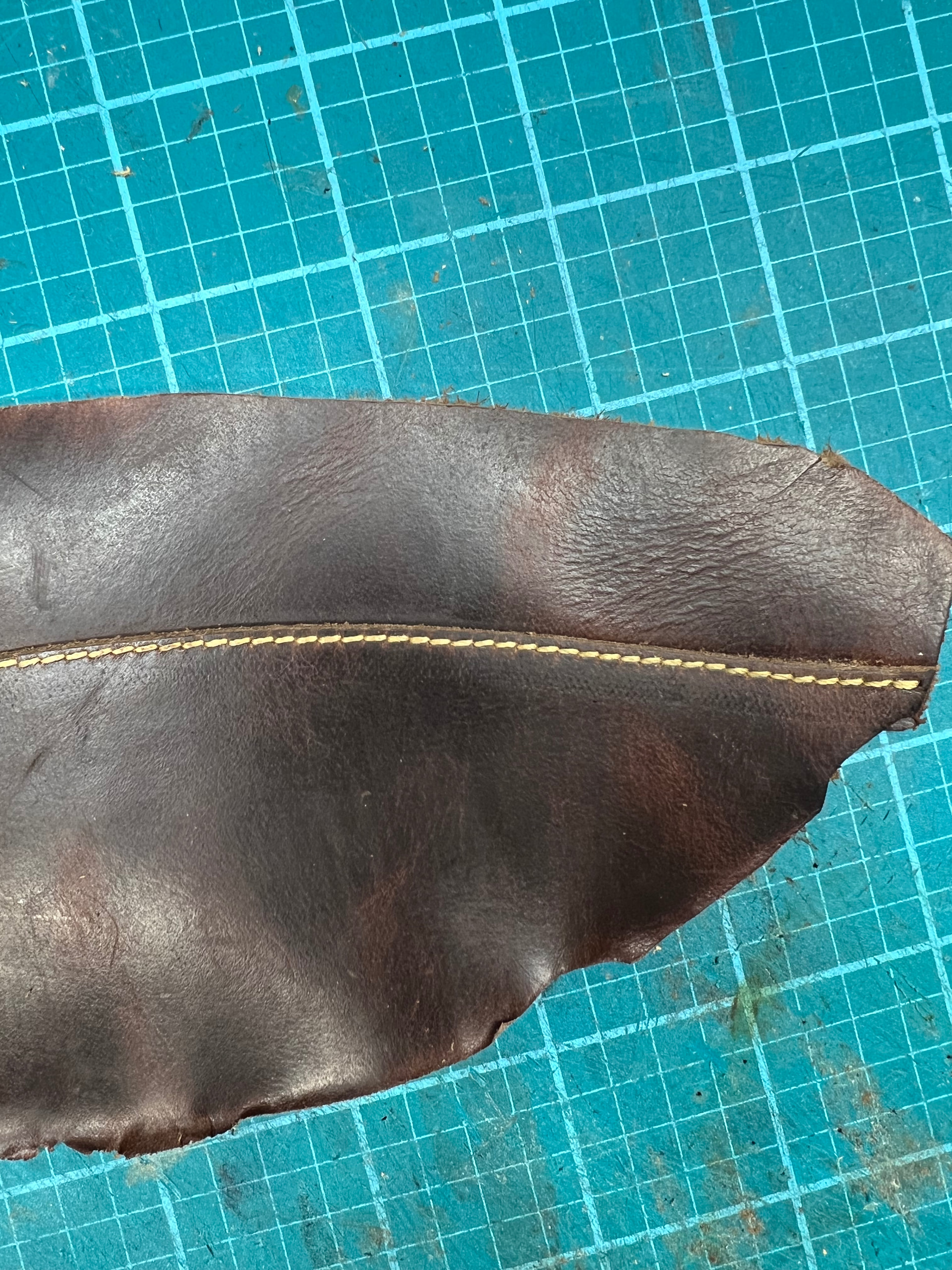 In general I’m curious about hybrid techniques like this that use the strengths of hand and machine. Machine stitching is so consistent and can follow curves better than me, while hands allow more complex stitch patterns and heavier thread and that saddle stitch look. I was exploring dry stitching a curved