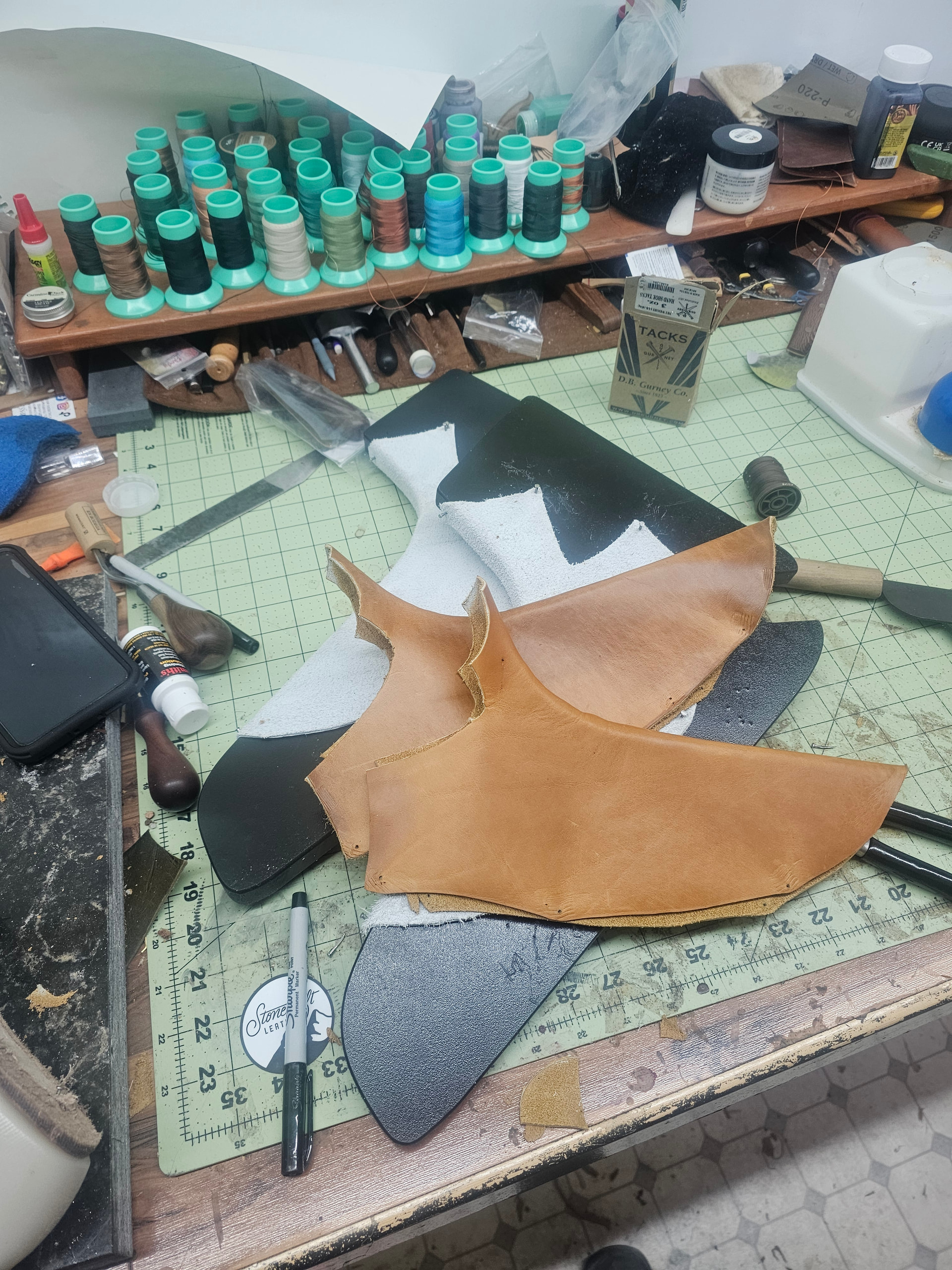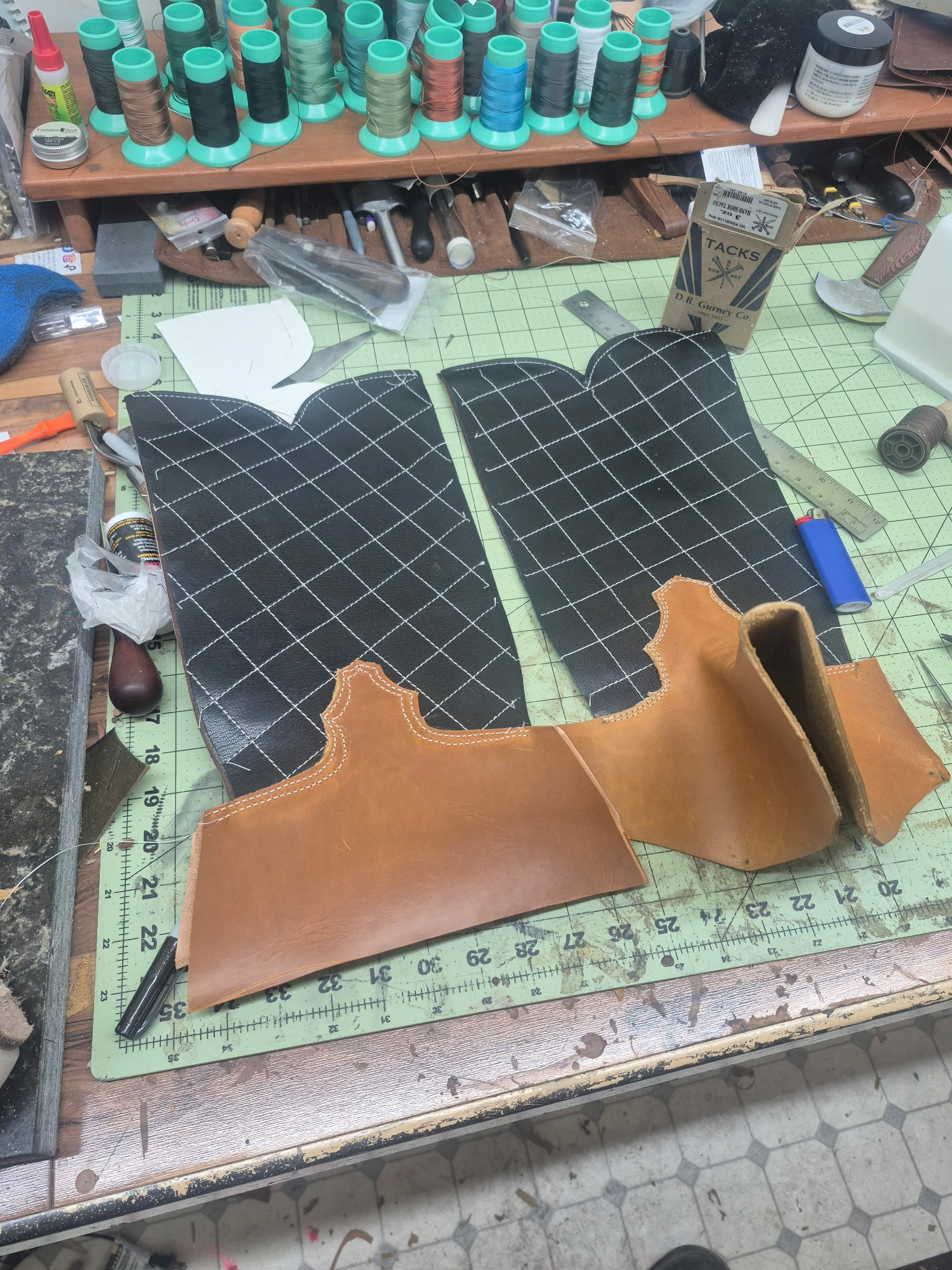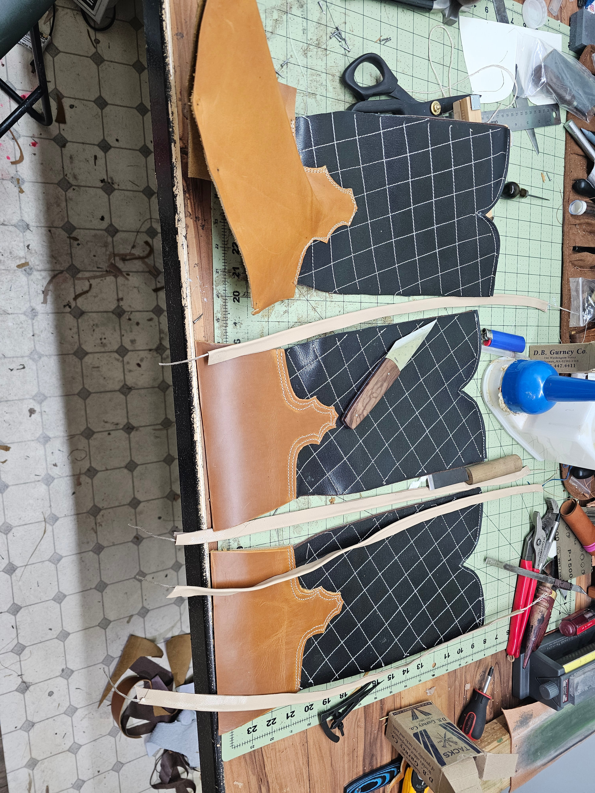 Pair #1 is Black antiba goat for the tops, and sunflower cxl cavalier for the foot.