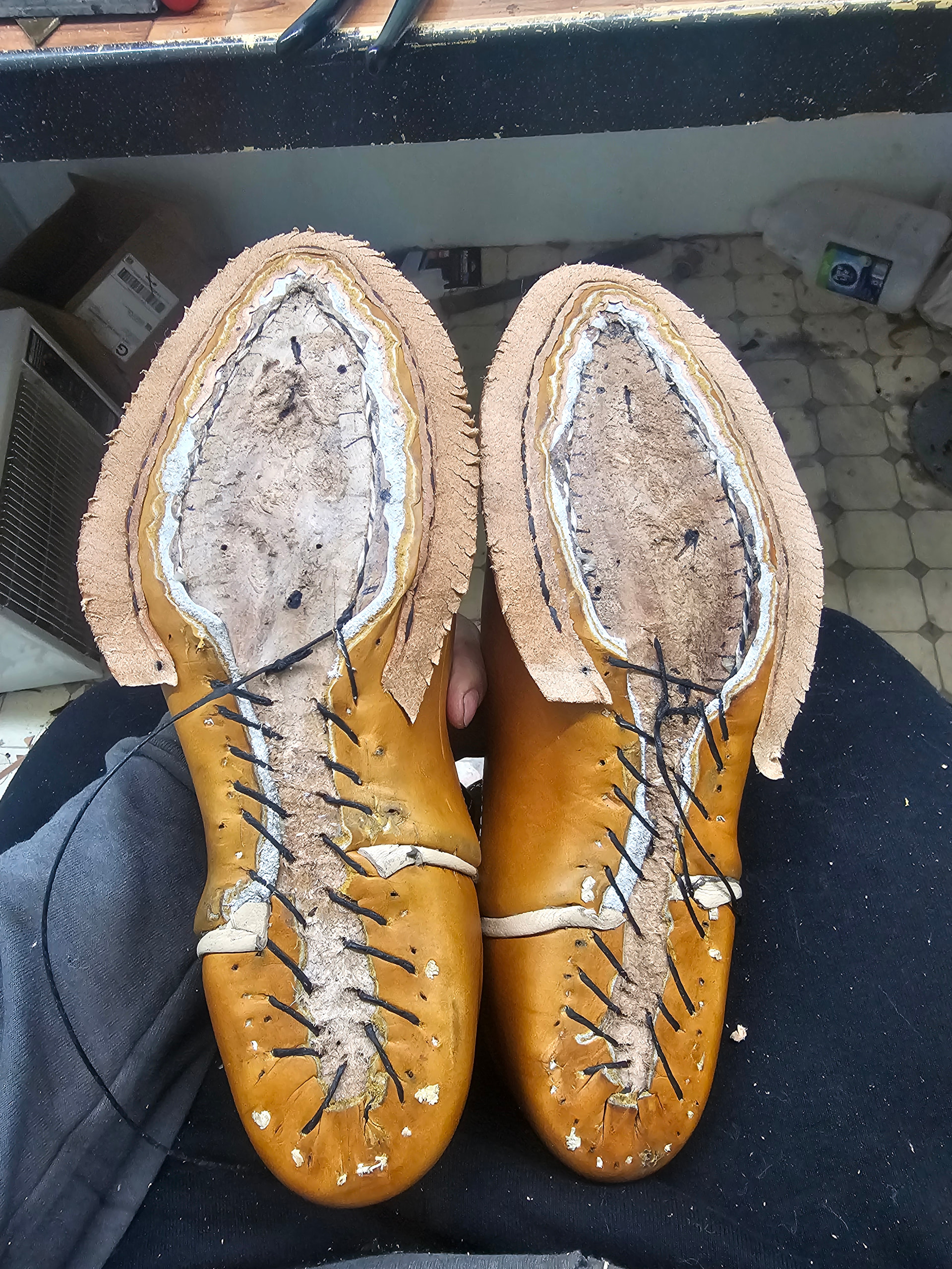 Definitely gonna see about cutting a holdfast for the heel seat in the coming pairs, as whip stitching went okay, but I’ve always struggled getting even stitches and tension
