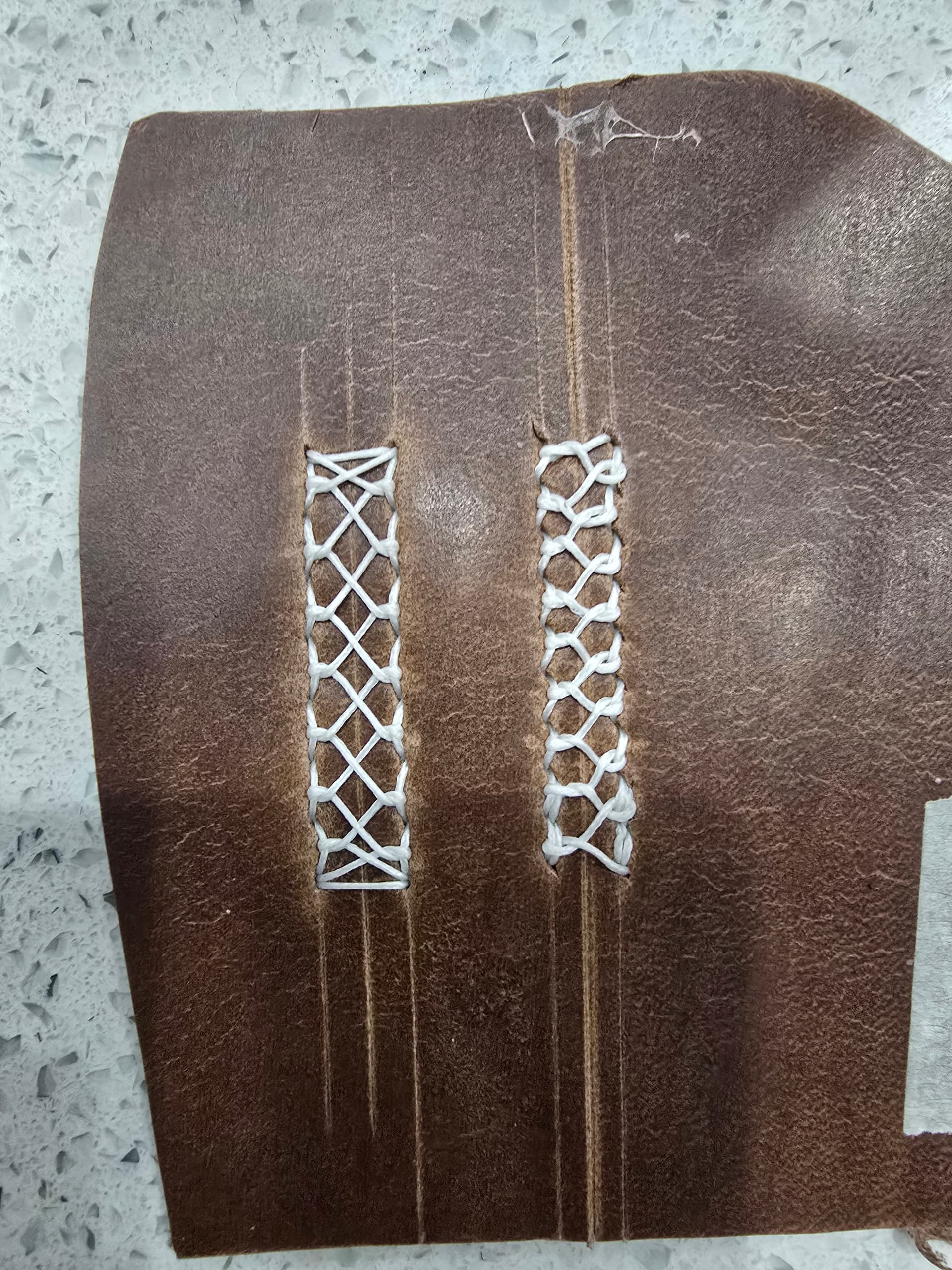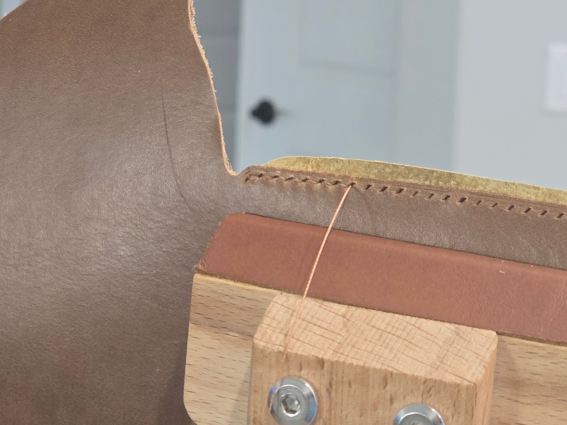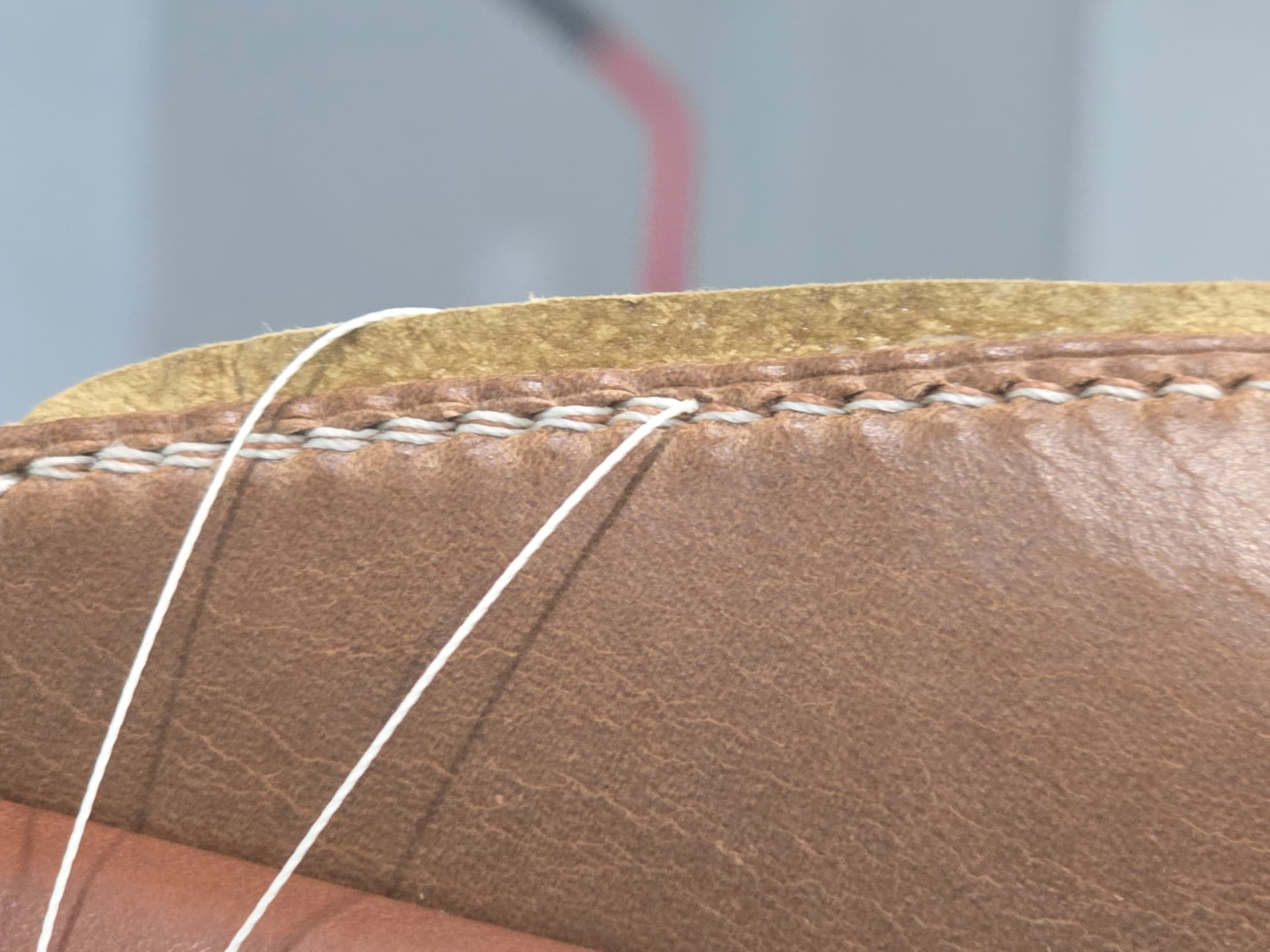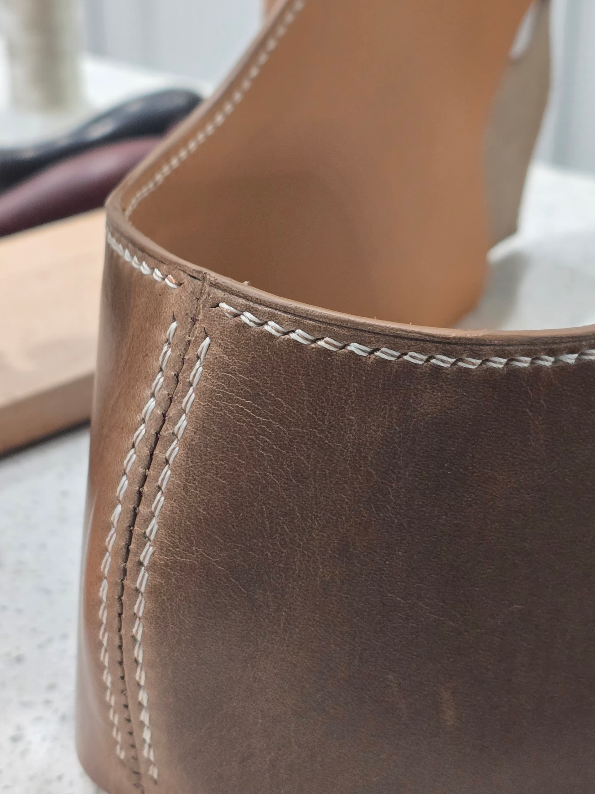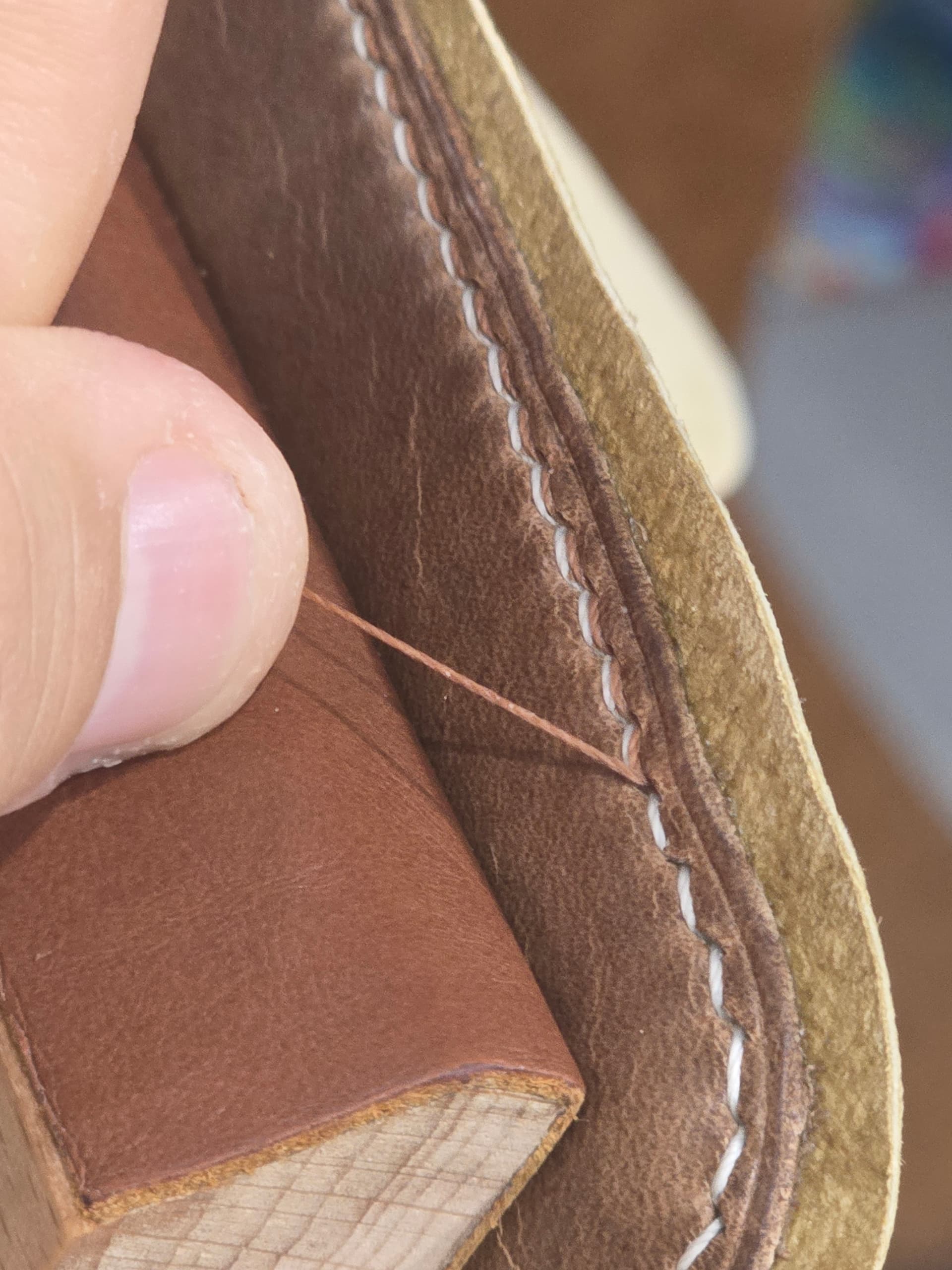 I continue to really enjoy closing my uppers by hand, a practice once known as “binding” that got killed off by Singer’s sewing machine. One of the fun parts of it has been finding and trying stitches that aren’t practical or maybe even doable by machine.