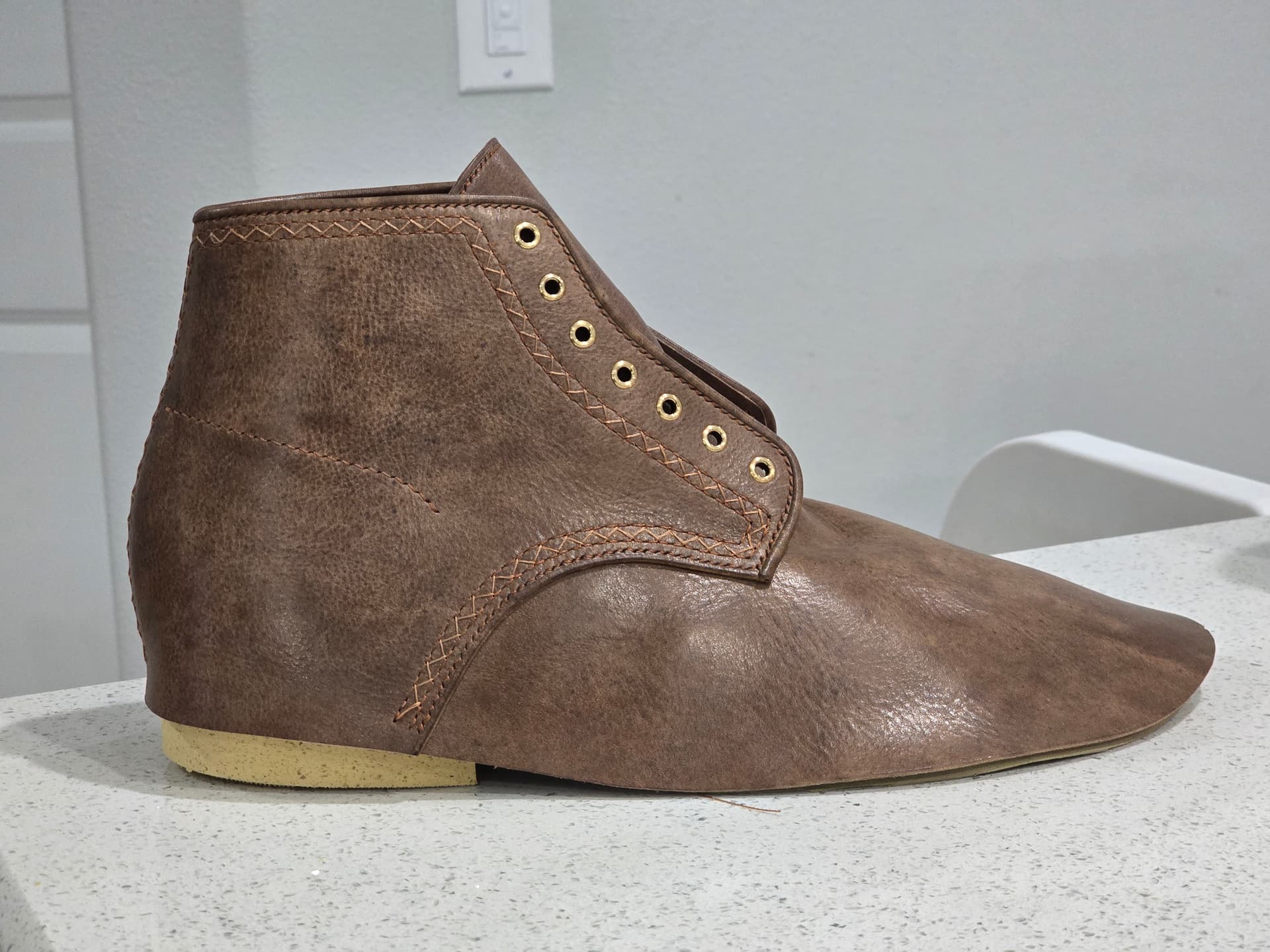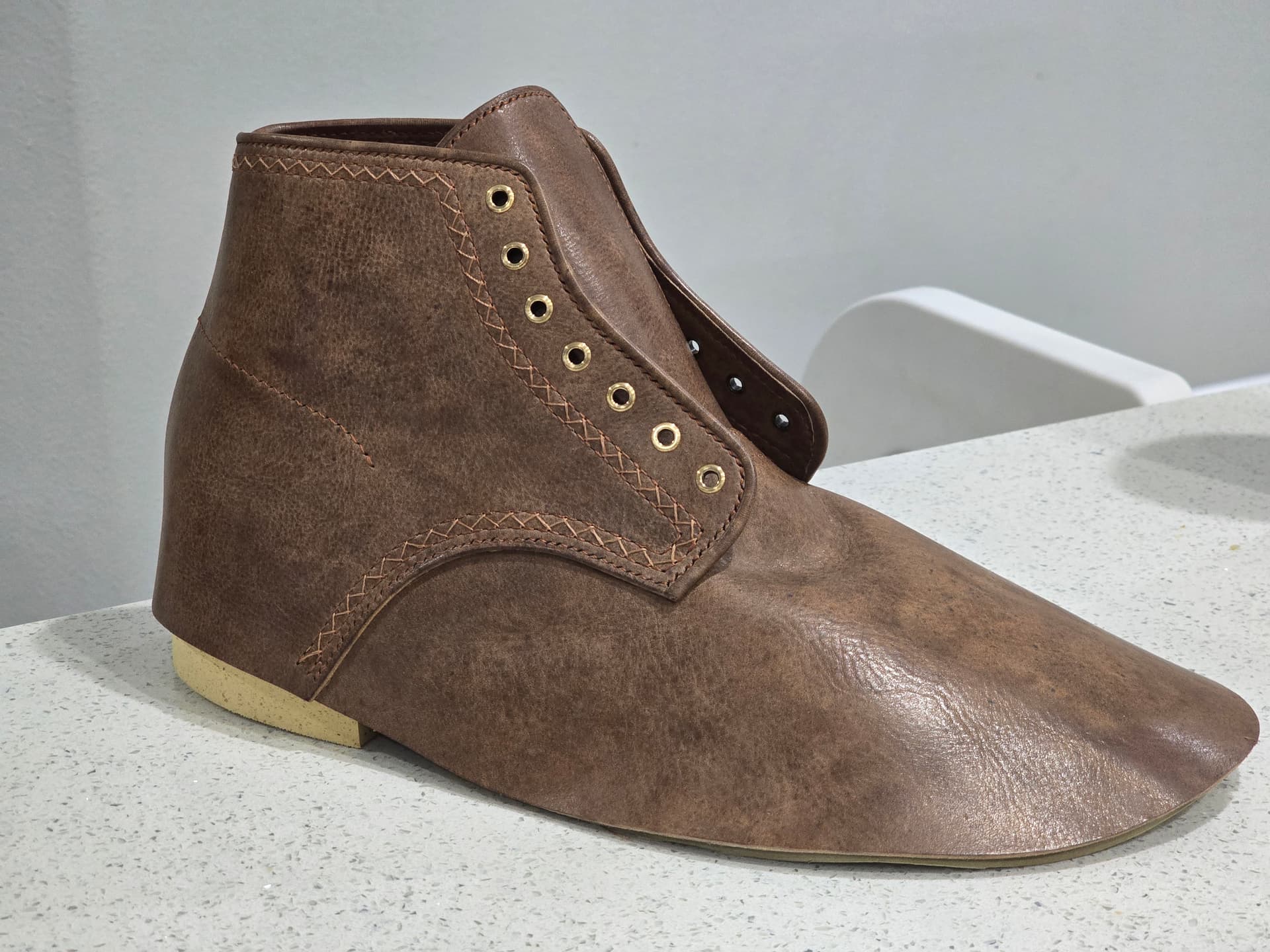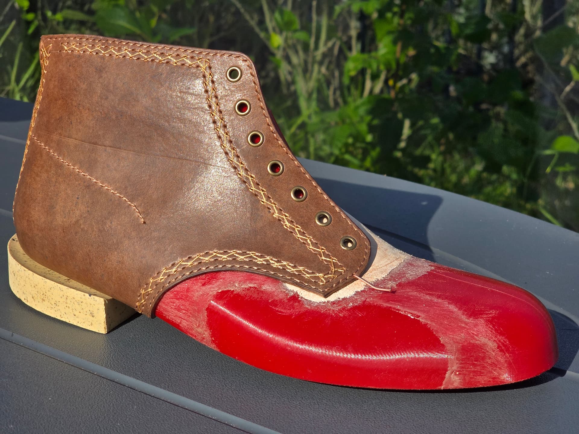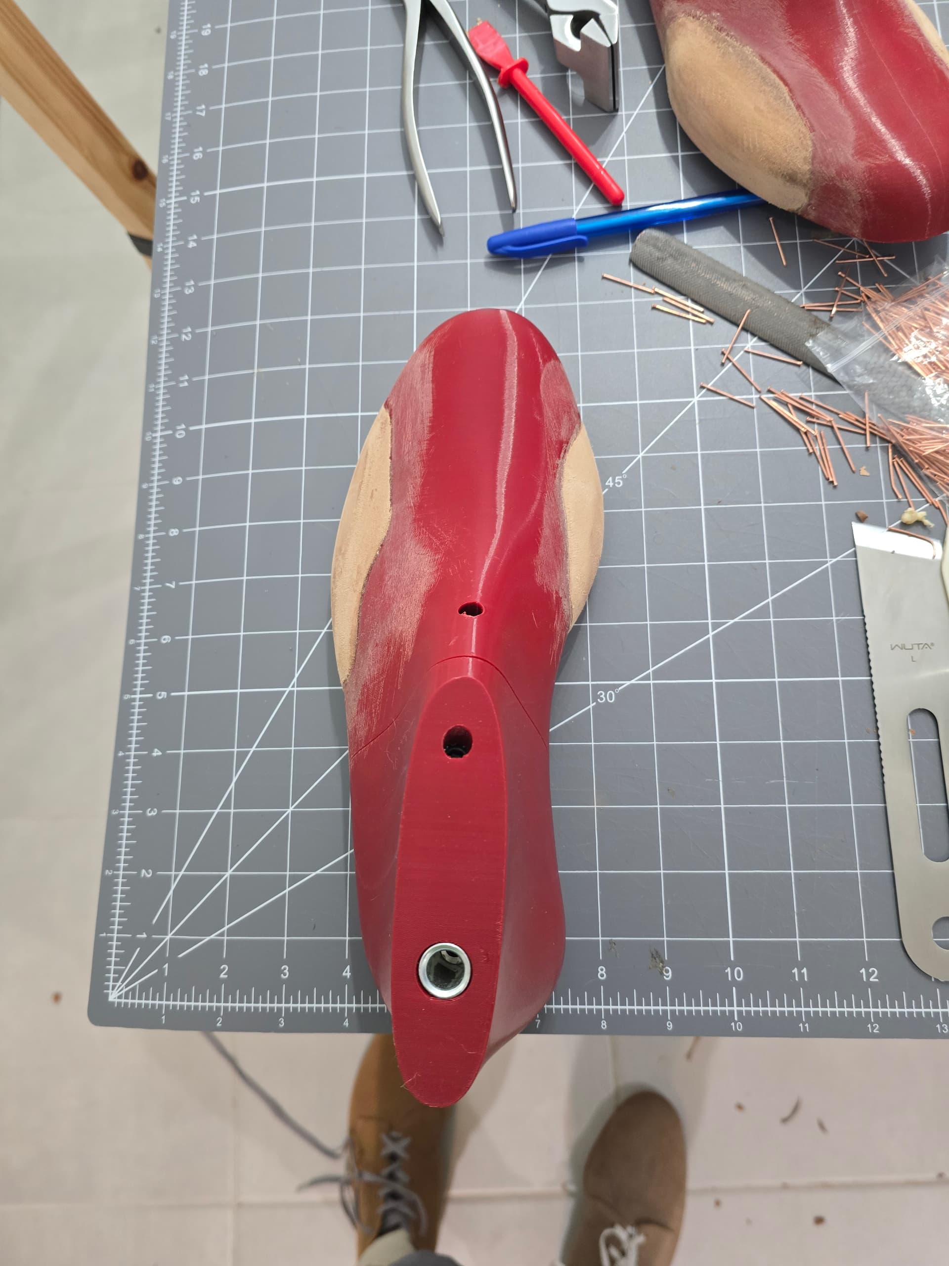 I cemented on a thin outsole to give slightly more support to try it on. Debating if I would to stack up a super crude heel as well.