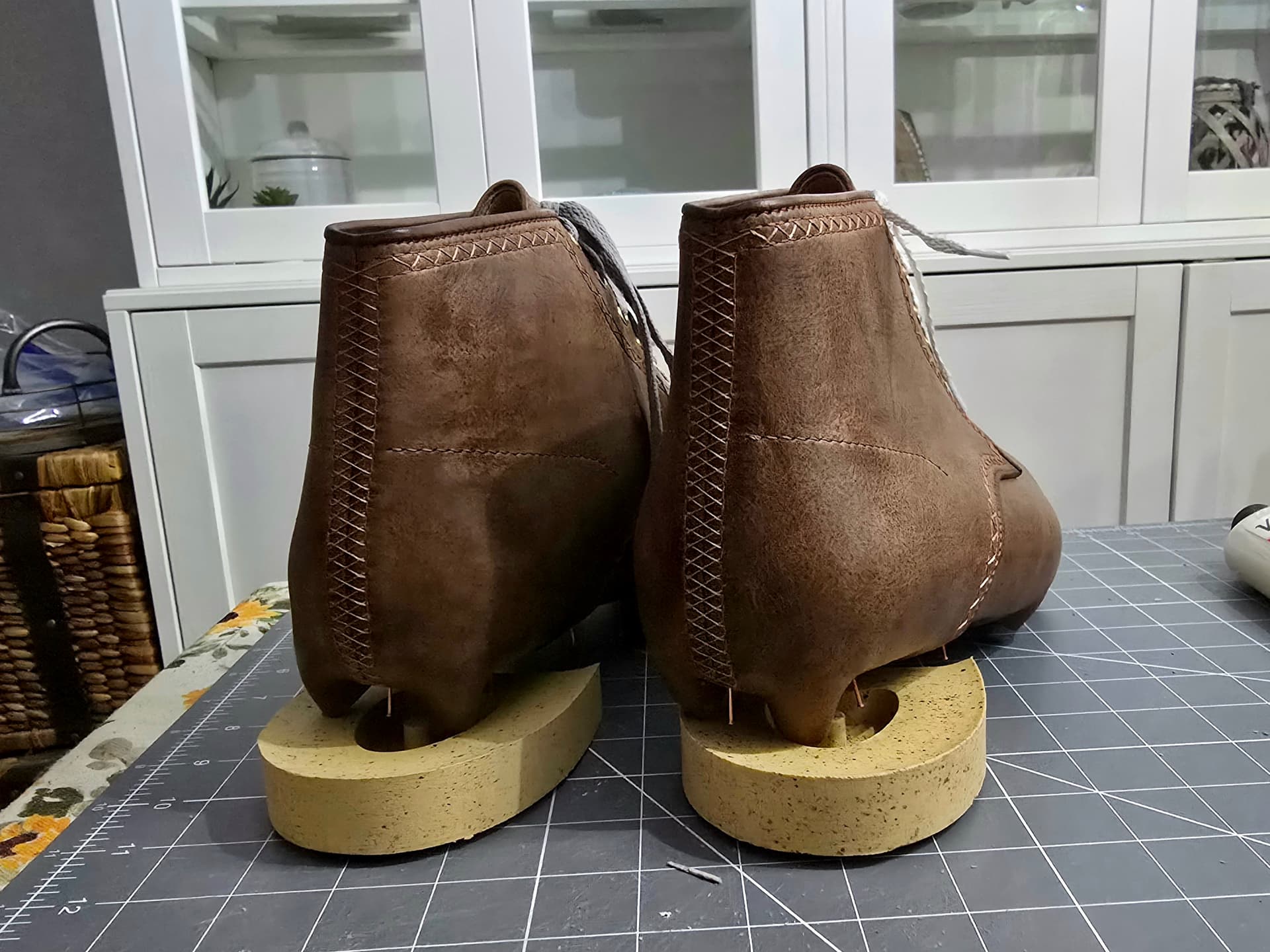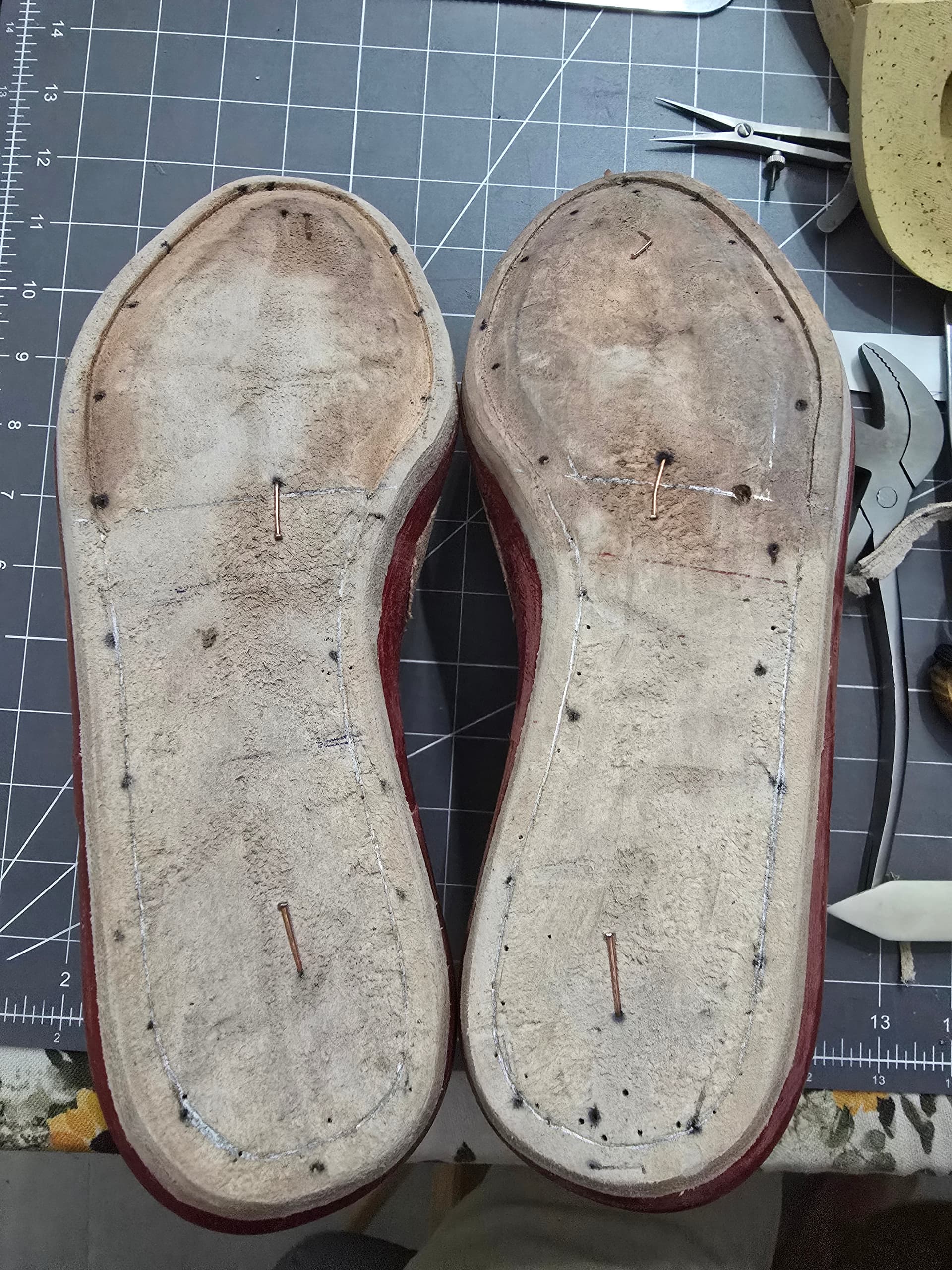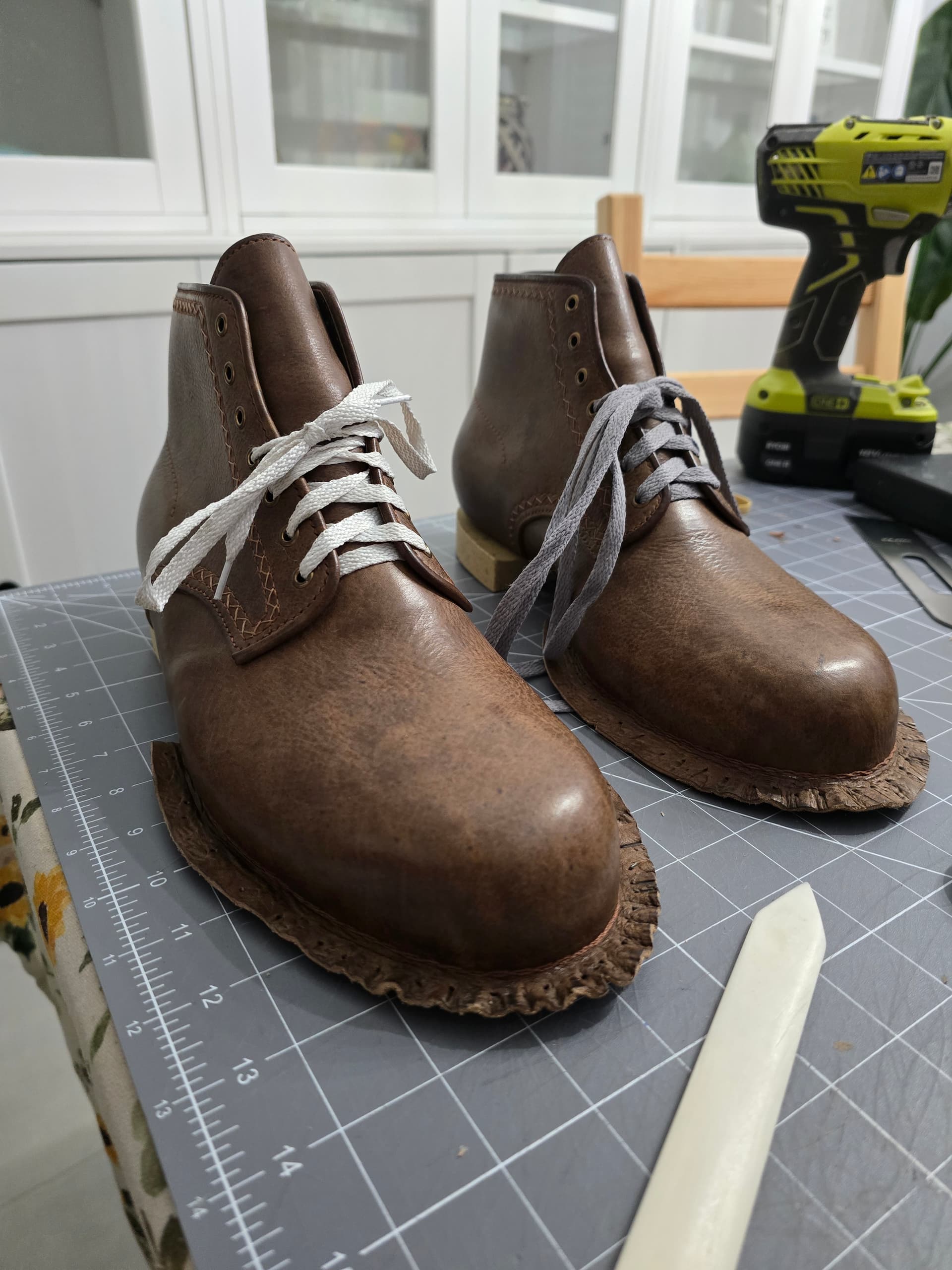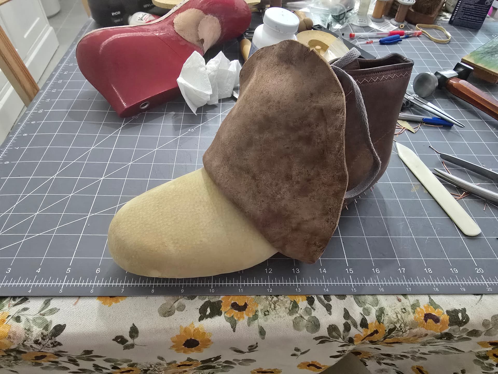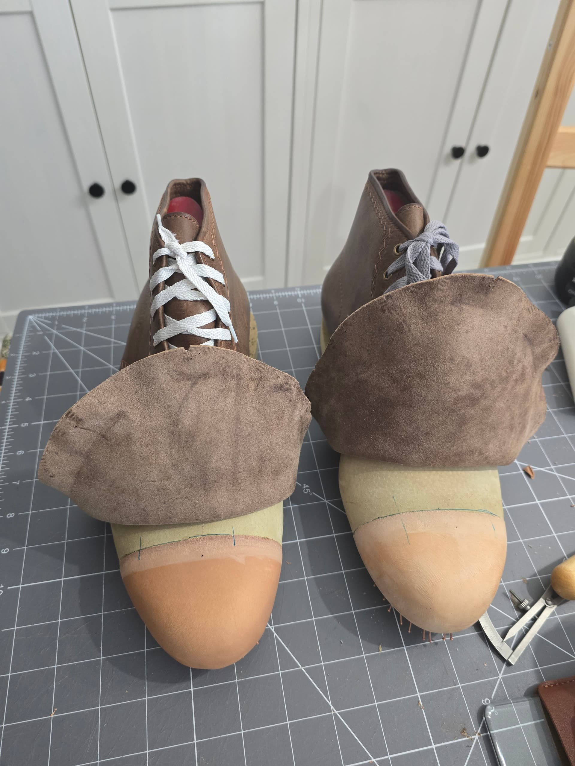 One ready for side reinforcements and toe puff. Will last the other foot tomorrow and get the toe puff drying.