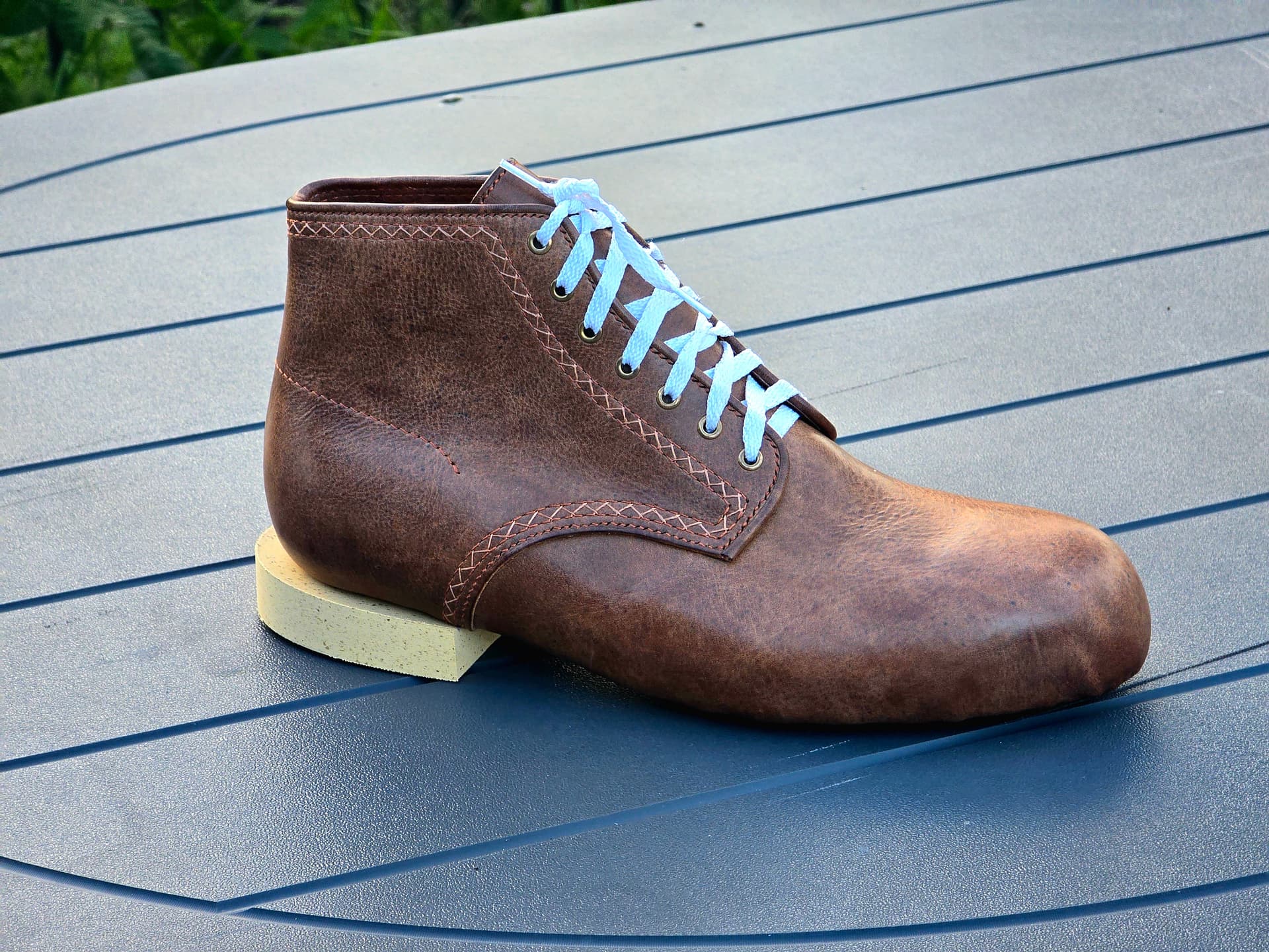 My plan right now is to do the main stitch and the chain stitch going into the insole in the same darker stitching on the boot with the stitchdown stitch to the midsole in natural with a chain stitch on it in the darker stitch, then the final double row stitch to the outsole in natural, so it all has a bit of a consistent gradient