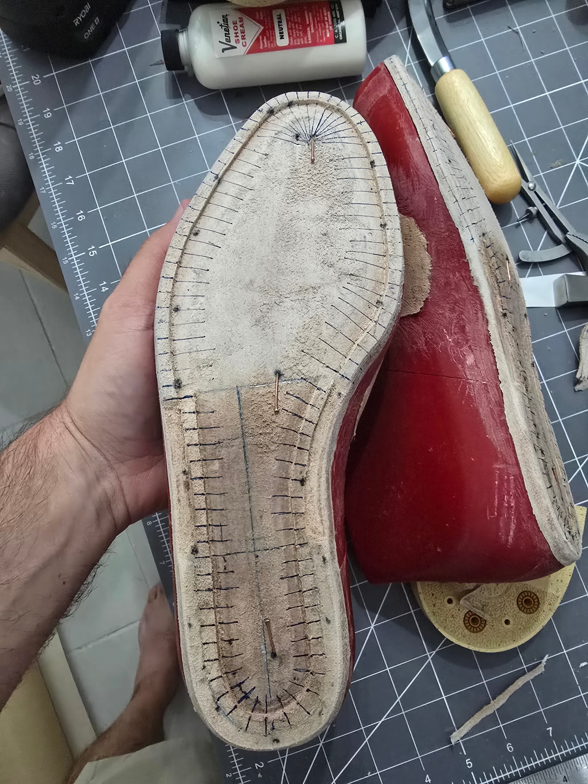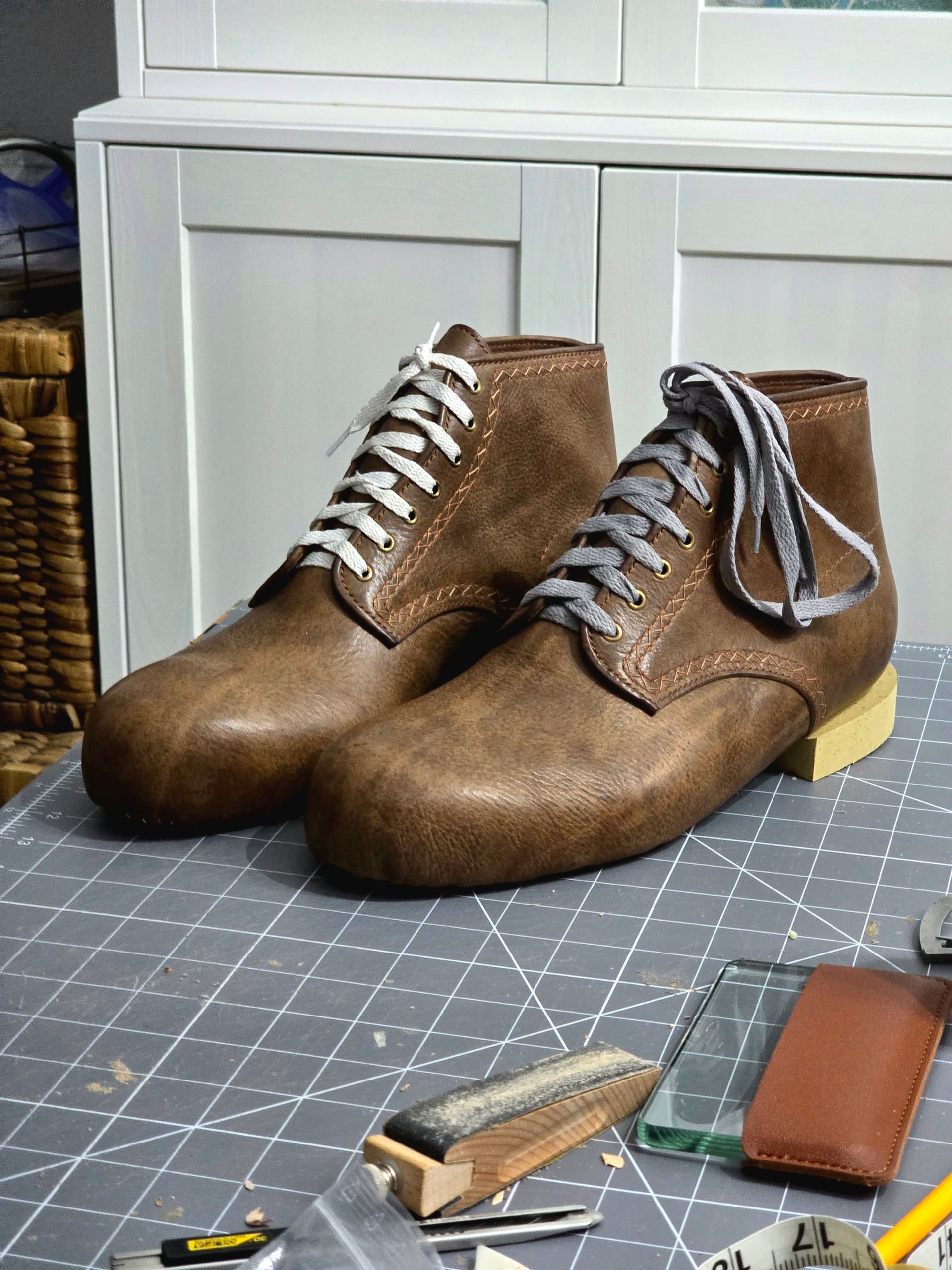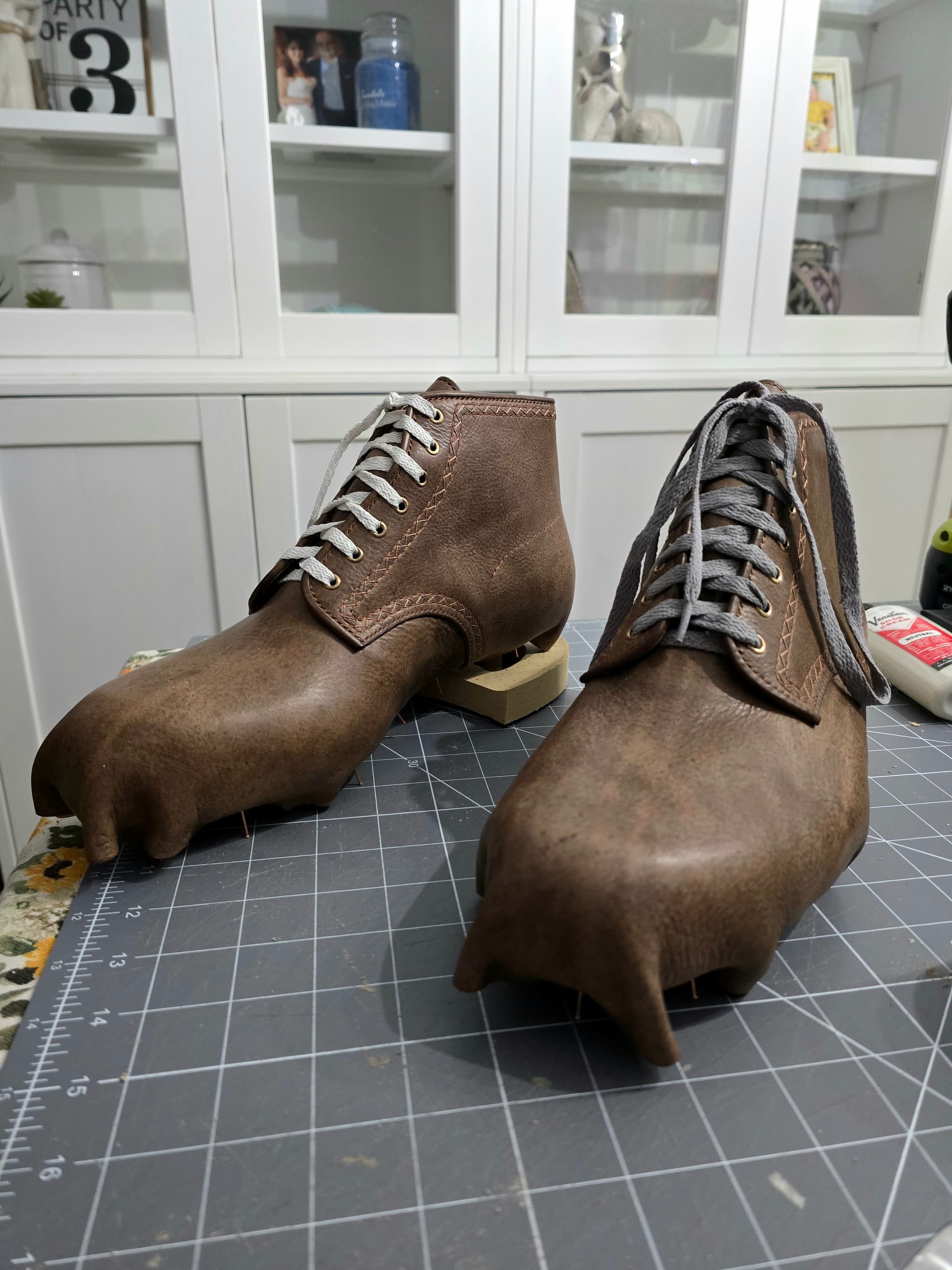 Toe puffs are in. Need to do a little more shaping, then I can finish lasting. Should be good to start the norvegese stitching tomorrow.