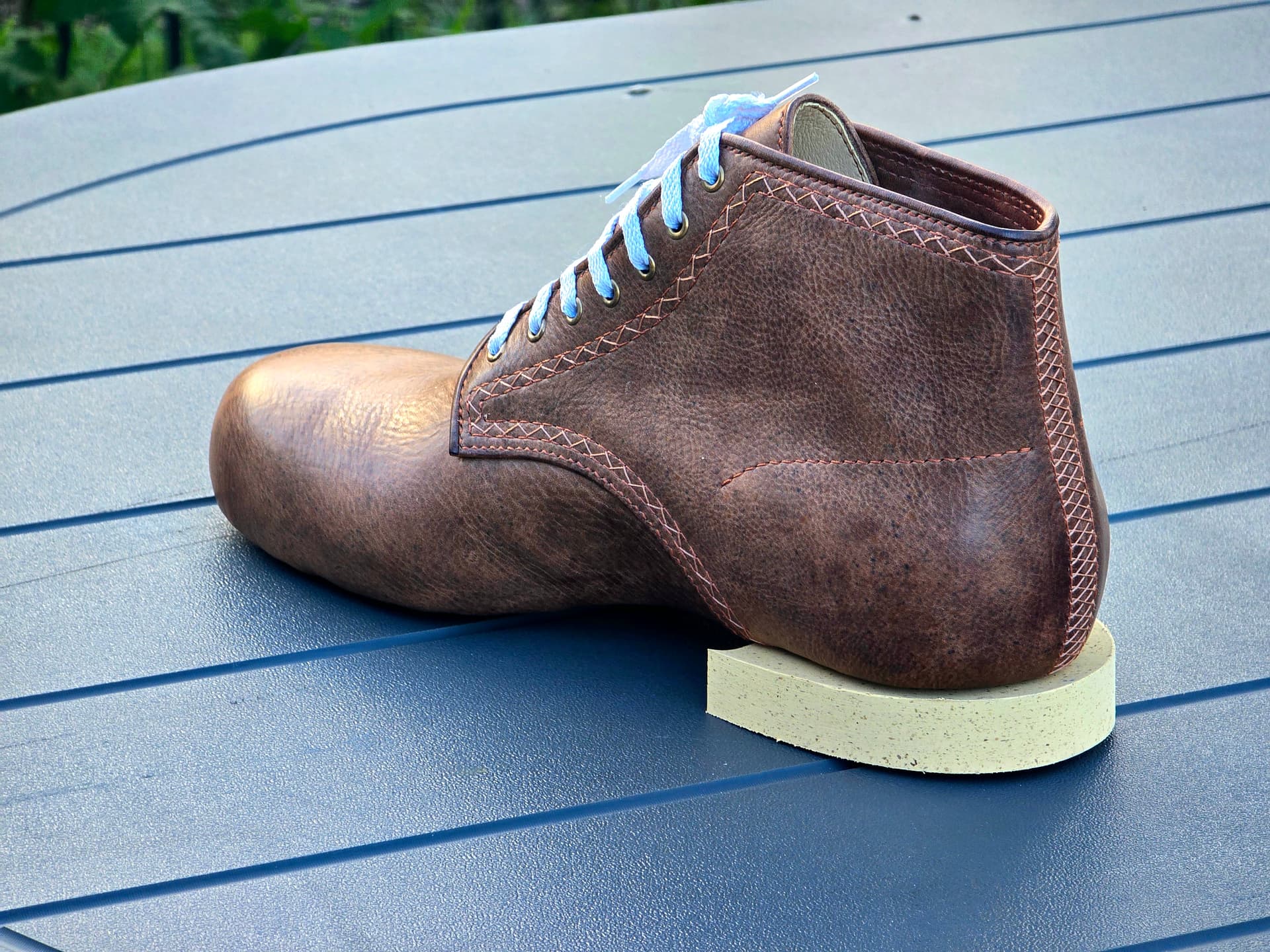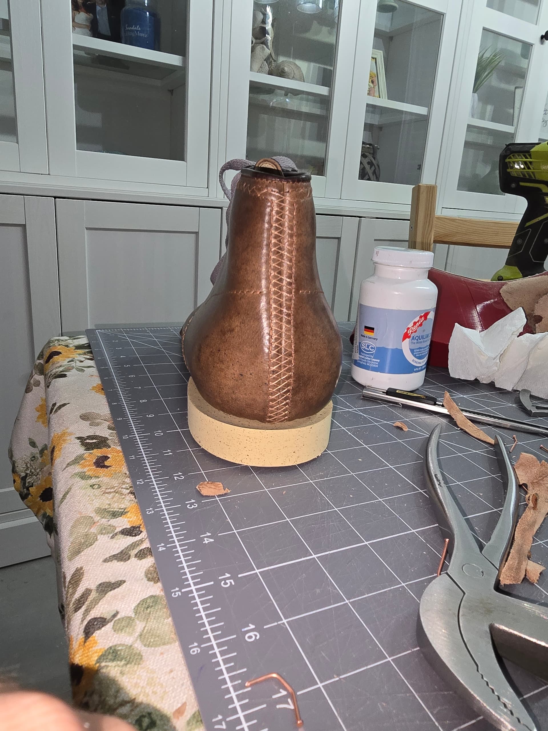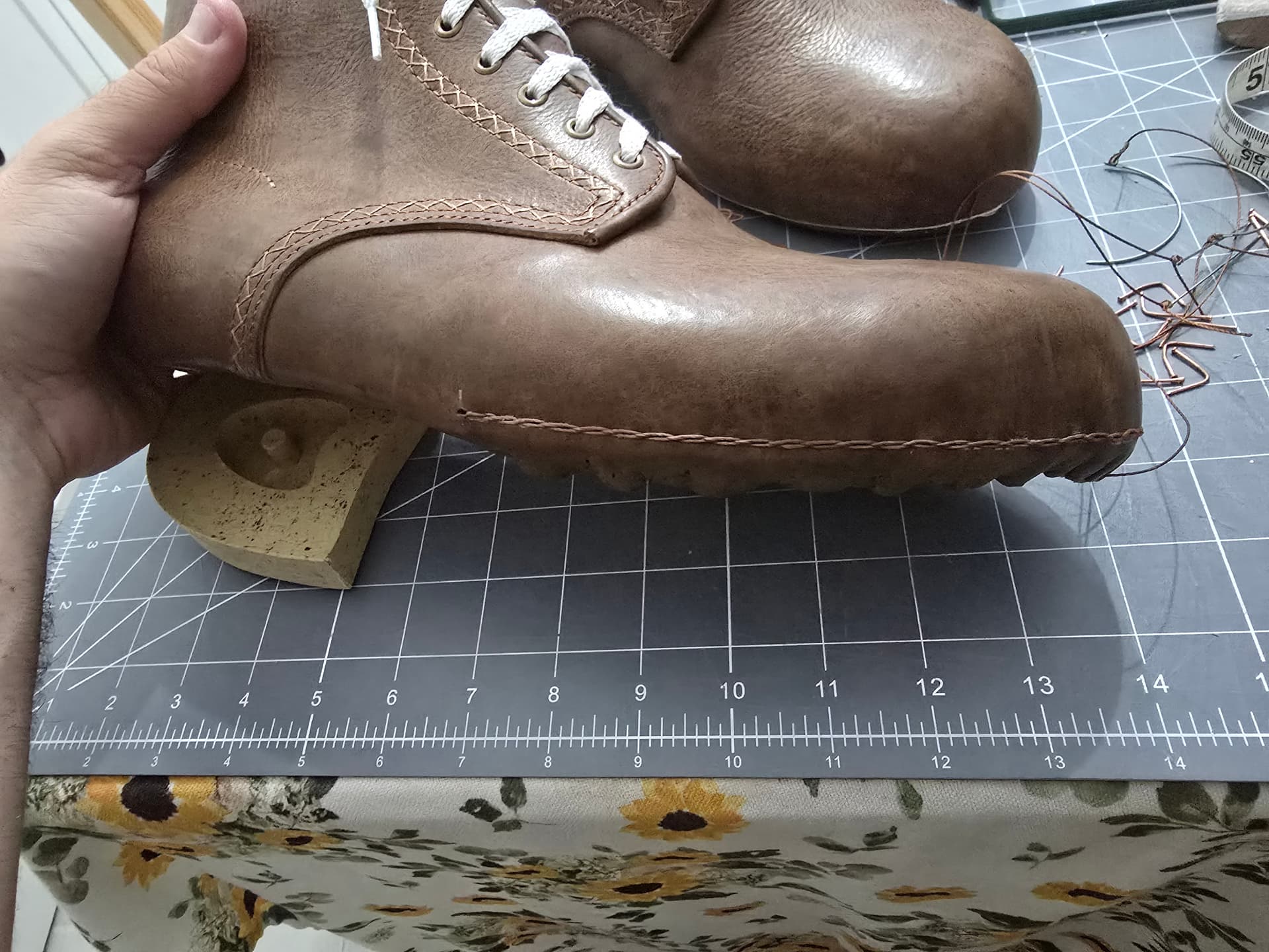Toe puffs are in. Need to do a little more shaping, then I can finish lasting. Should be good to start the norvegese stitching tomorrow.