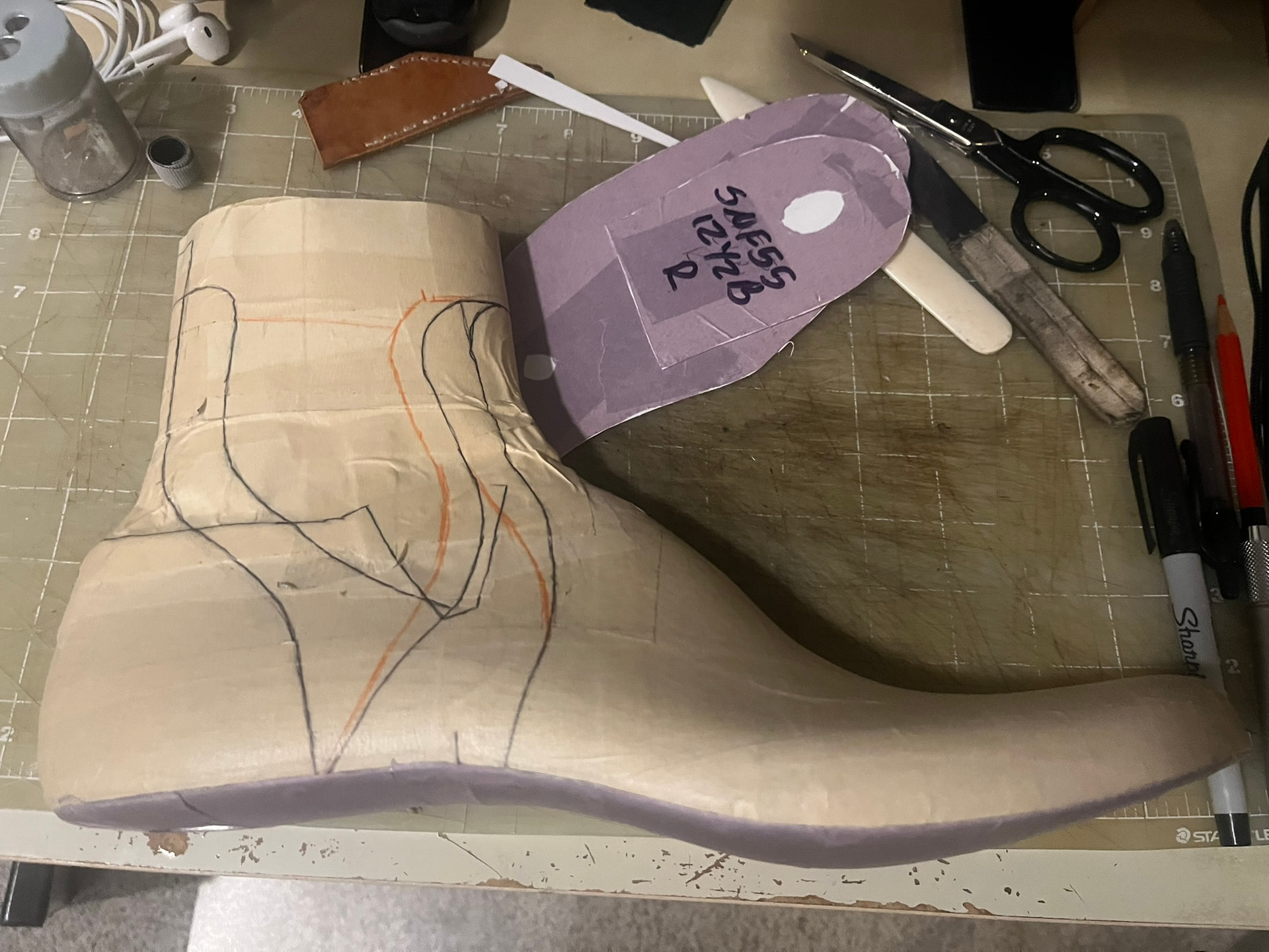 The 55 last I’m using has a higher heel pitch than I’d really like for this kind of design. If I do a wedge sole, I’ll need some kind of wedge-shaped lift to take up the vertical space. But I’ve got the last and I’m confident it fits from me from factory boots. I want to spend the lastmaking energy on pairs for a couple friends, and I’d like to move these Chelseas along a little quicker to making and bottoming, where I’m itching for practice.