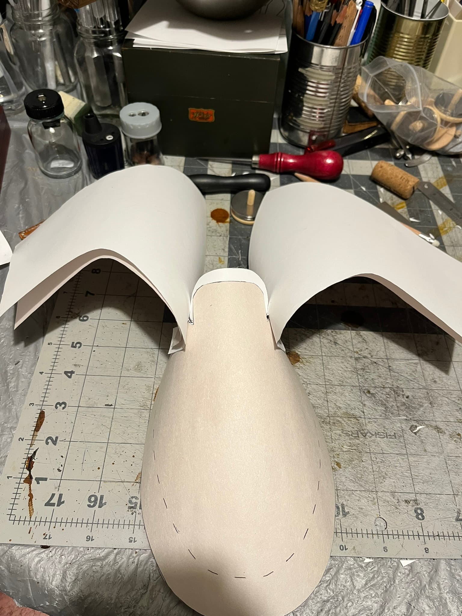 I went back and did new tape forms from my last for the failed pair number 4. My first mock-up in foam failed, but I think I eventually got it in paper: