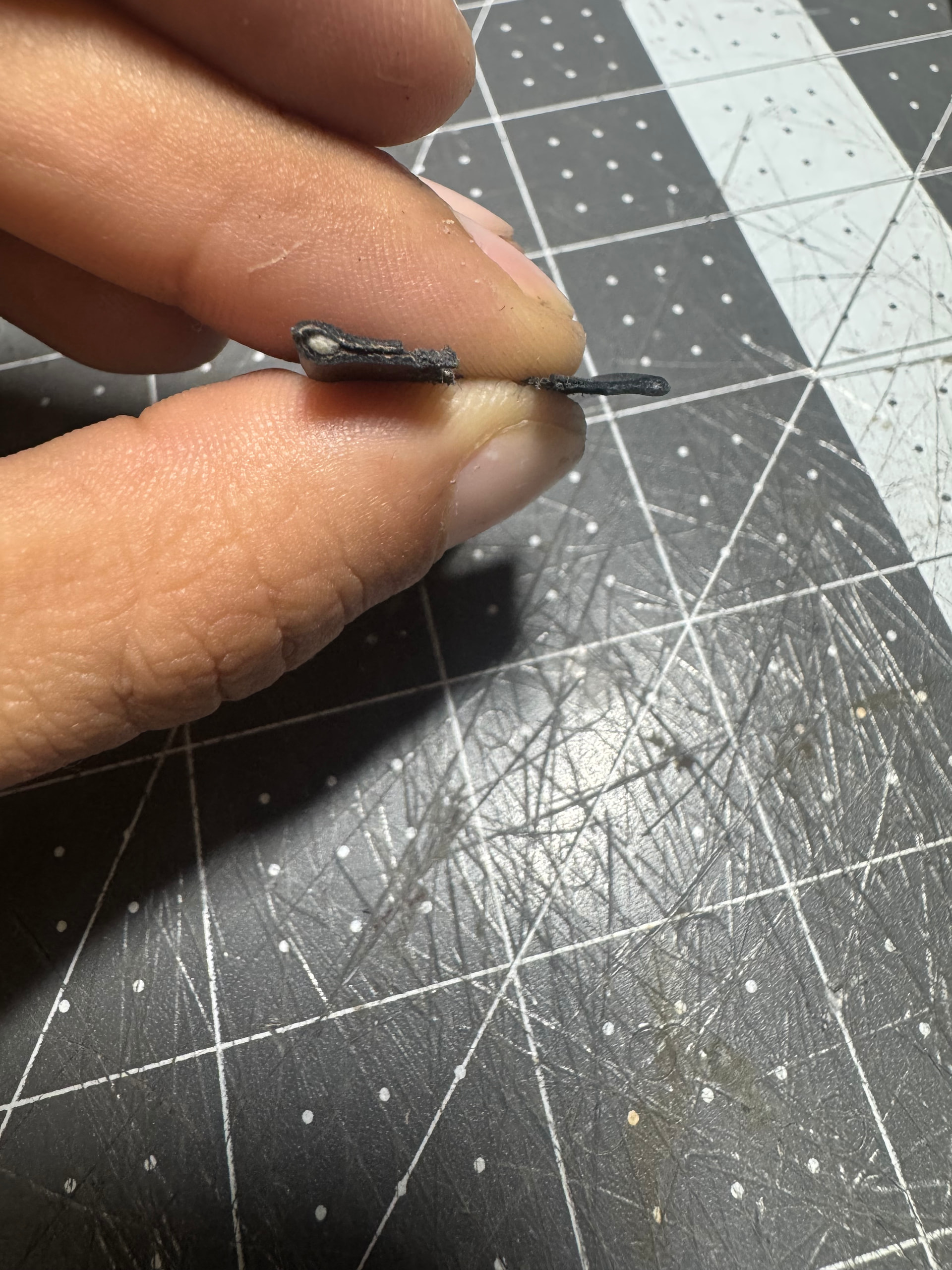 I was under the impression that the size (usually length) of a stitching awl is correlated with the hole size and thus possible SPI. I think this is still a good estimate but some of the awls I have don’t follow. The Rasche awl has been my favorite so far. Even though it is the smallest awl I have it has a good thickness and cutting surface. The small length lets me use a lot of force without fear of it breaking. The King is larger than the Rasche but has a much smaller cutting surface and thickness it also has a different curve. I purchased the unknown awl from Lisa Sorrell at Boot camp. I have no clue who made it but I got it to use as my straight outseaming awl. The cutting edge is really large, leaving a big hole. I bought it to use on boots with rubber outsoles. The Mamoru is the largest of the awls with a large cutting surface and a similar curve to the King. This is the only awl that came with a cutting edge out of the box. Not a big fan of the length since it feels like it will break when I apply a lot of force.