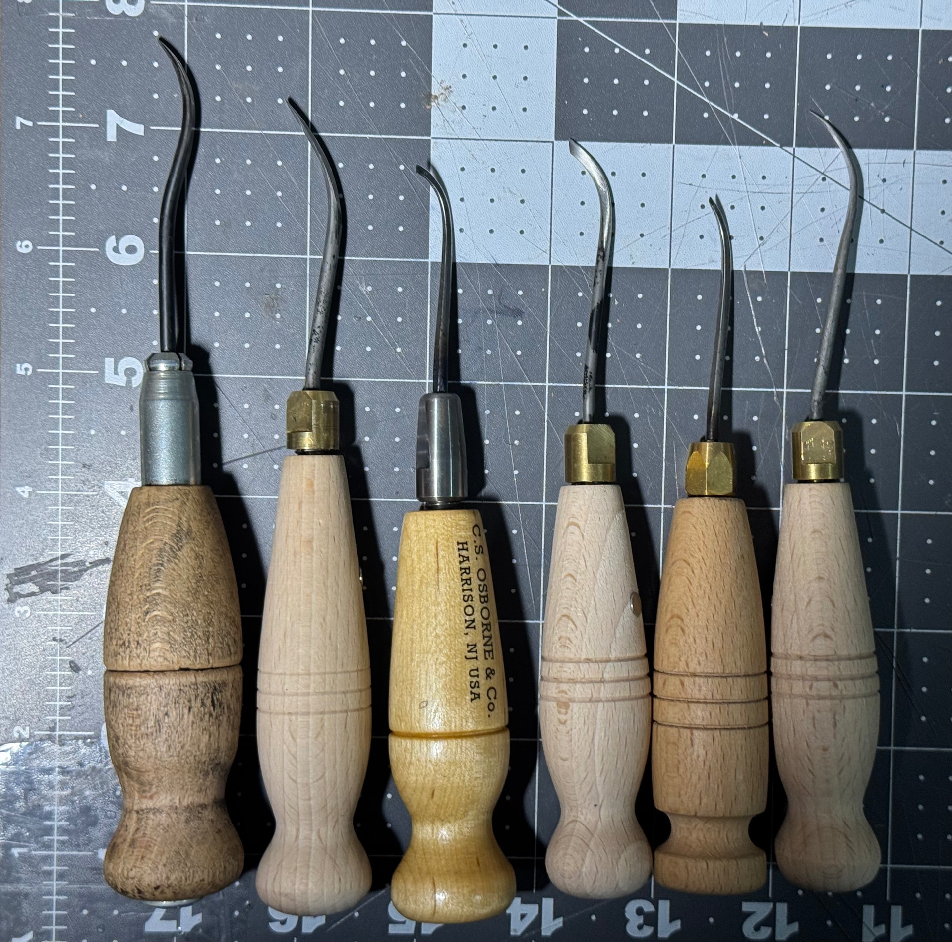 From left to right: Cheap Chinese, vintage Japanese style, Mamoru Japanese style, vintage German style, Minke