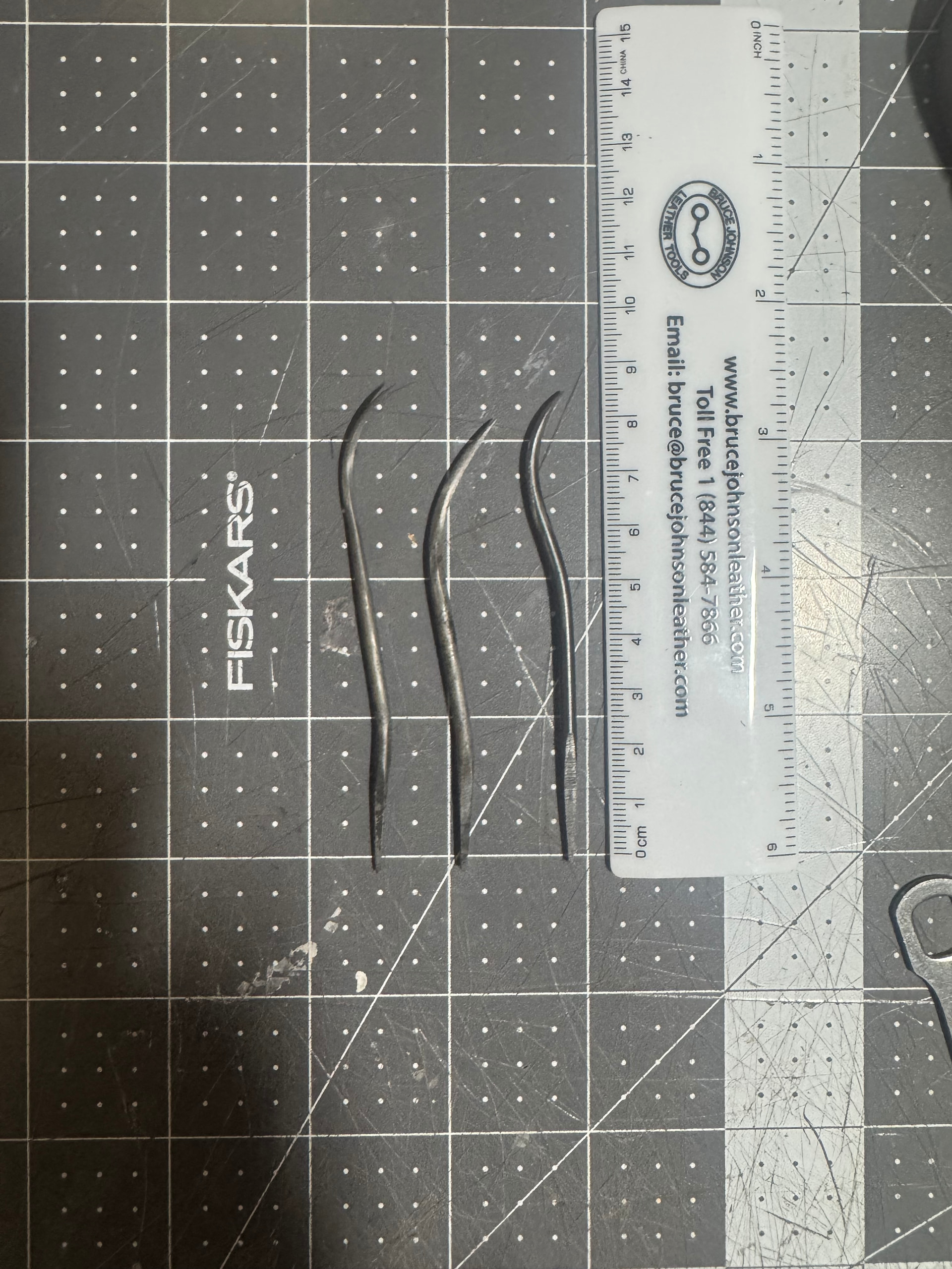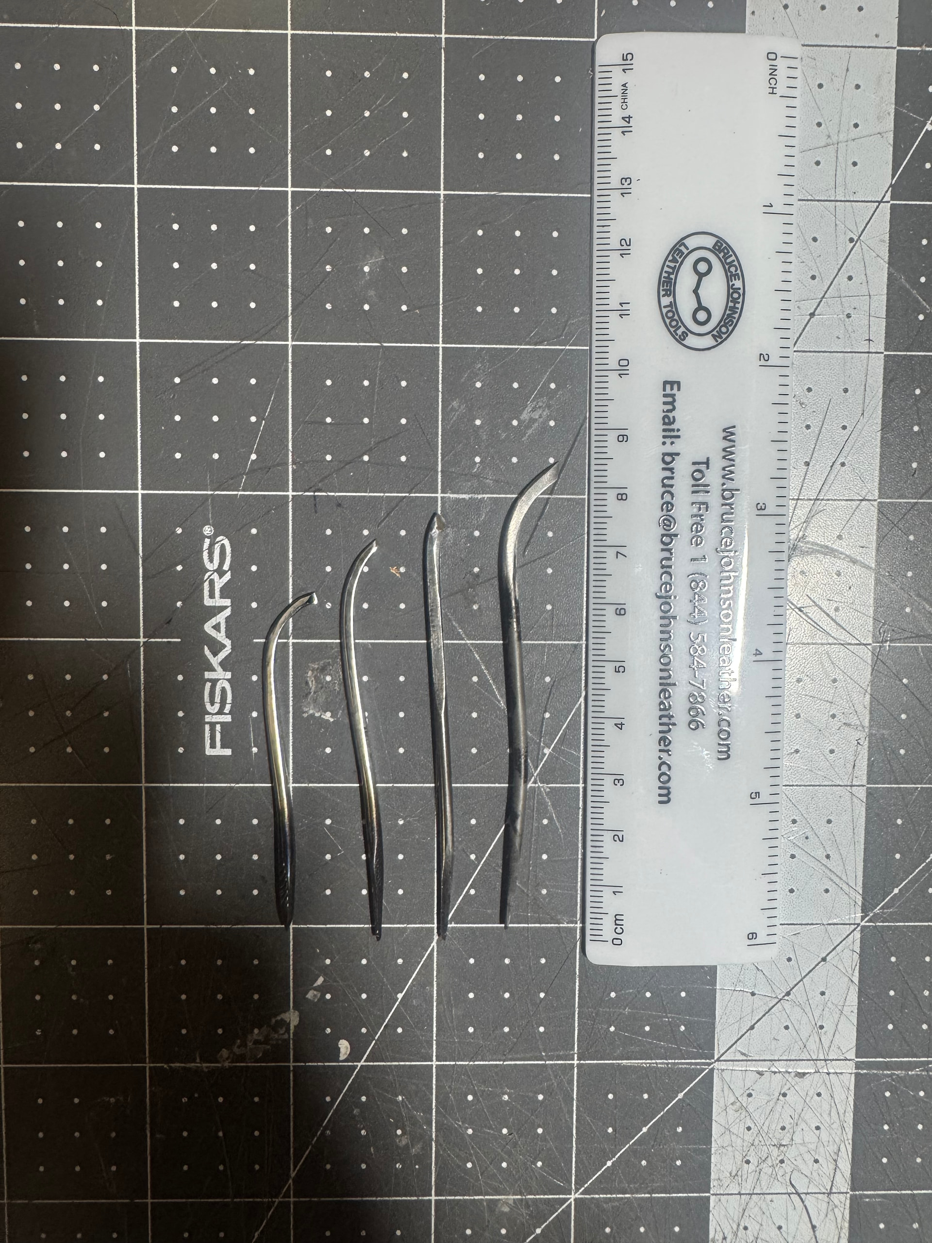 From left to right: Waist stitching awl Mamoru, Welting awl Mamoru, Carbone 3 3/8”