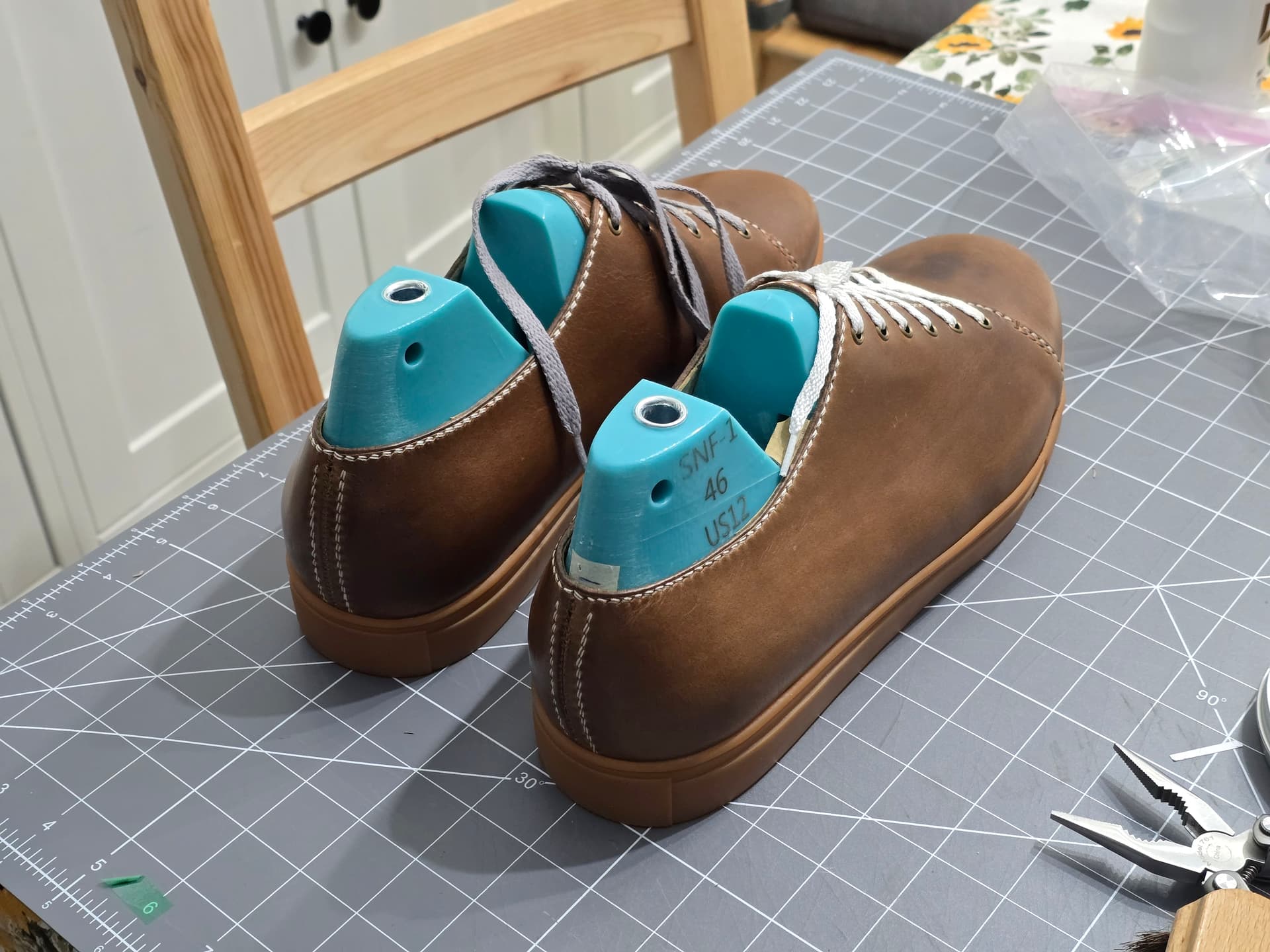 Pretty much done. Need to clean up a couple minor things and let the heel lining on the one dry (had to clean up some residue when I de-lasted).