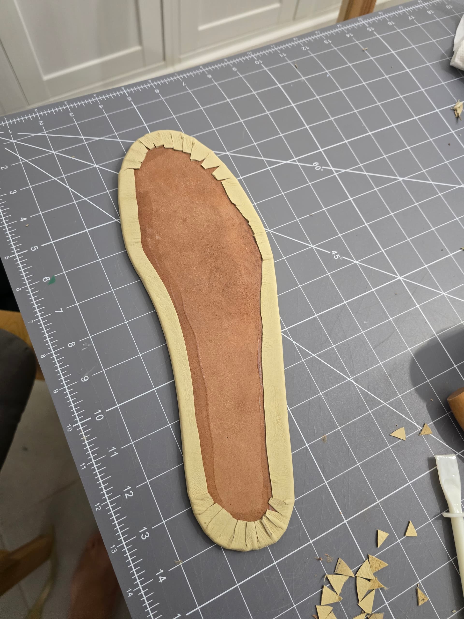 I’m contemplating if I want to do a norvegese style chain stitch with some thin thread for the cup sole stitching to add some subtle contrast (and practice my chain stitching since Im planning on actually doing a Norvegese construction on my boot project).