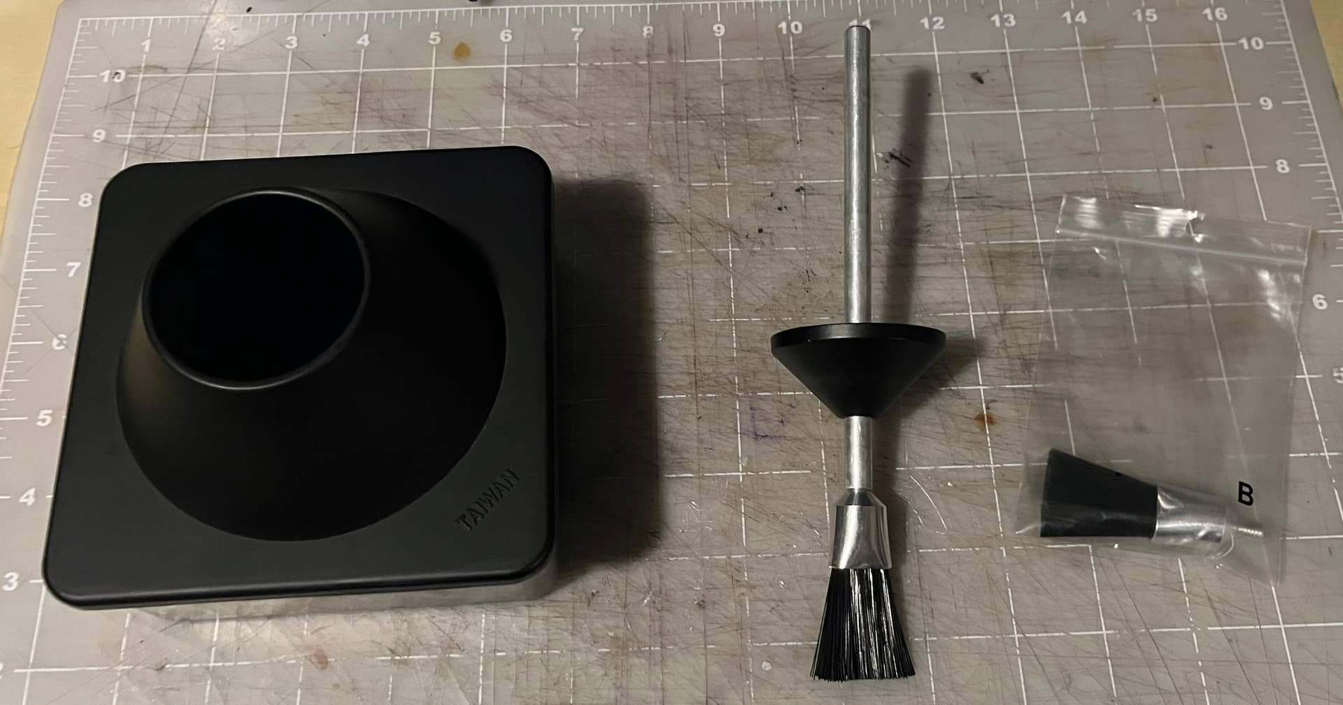 Note that even new, there was a bit of chipping out of the finish around the upper ring of the brush collar: