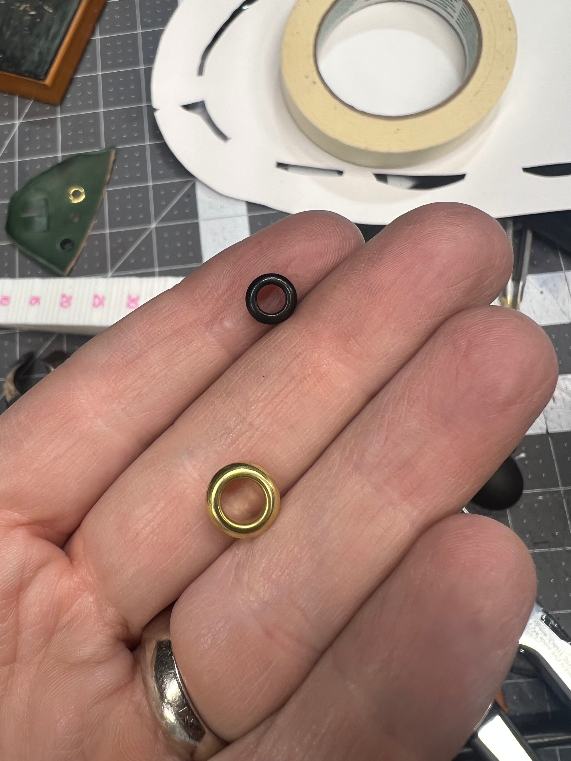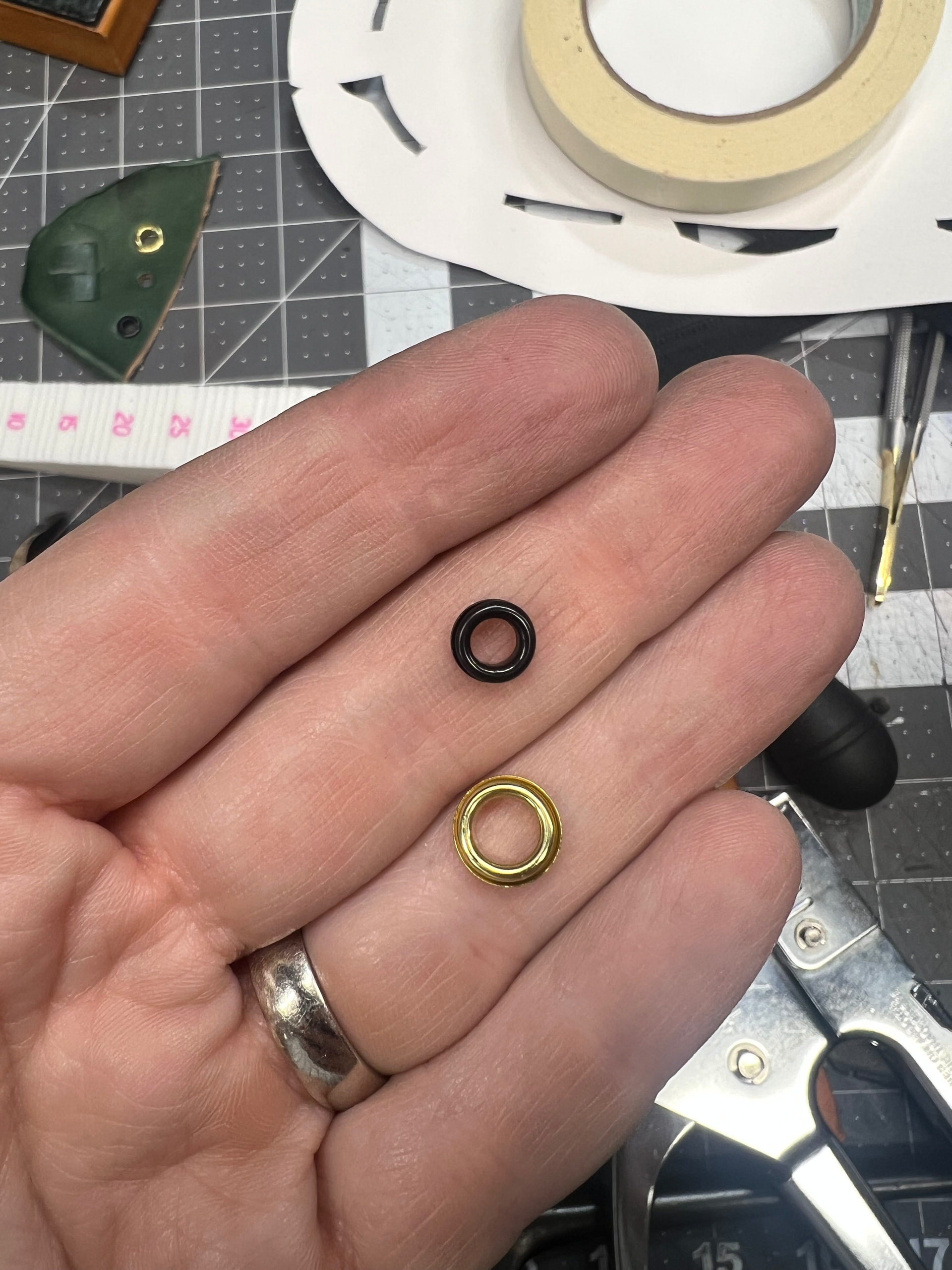 Note that individual eyelets may measure slightly differently. They’re designed to tolerances within range for compatible setter tooling. Note on that below.