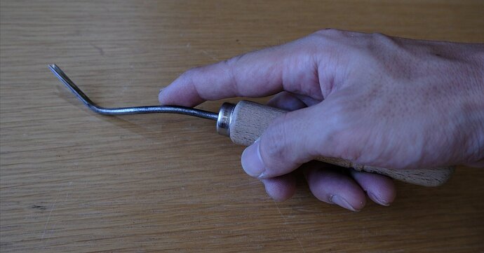 The last tool was labeled as a “welt plough” on the eBay listing. It has a completely different look from the other welt ploughs/knifes I’ve seen. Its basically a “V” that follows a spoonish curve. I’m not sure if this is just mislabeled or if it is actually used for shoe making. It is also completely dull. I can sharpen the outside but I couldn’t find a way to remove the burr. I will also try it out with a triangular whetstone.